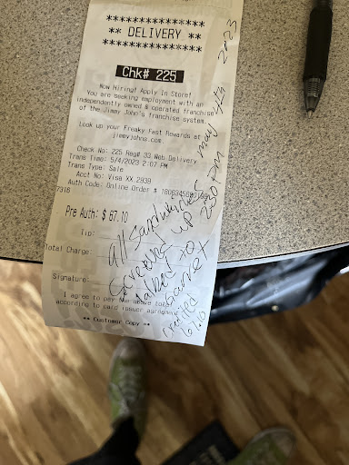 Read moreJust talked to the manager Garrett, I’m keeping my receipt and dating it with your name, I better be credited 67.10 sense you’re able to not refund and screw up every sandwich and take an hour and a half and tell me oh I find it hard to believe that happens, if I’m not credited next time I come in or it’s missing I’m going to file a lawsuit because I’ve take photos of the sandwiches, this was not freaky fast, not freaky affordable or freaky impressive. Nor were the last three times, I hope you actually credit me like you say, don’t take jimmy johns and run their name in the dirt. Summer is going to be way faster yall better get prepared. Here’s my proof bud. So you...