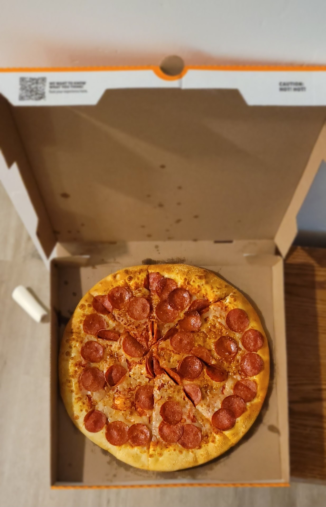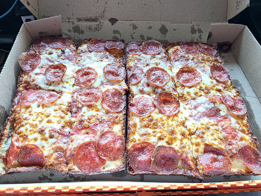 The pizza is⌠rectangular chaos. Crust: thick, golden, and lightly dusted with whatever crack-like seasoning they use. Cheese: molten, yellowish-white goo that stretches like itâs trying to escape. Pepperoni: cupped at the edges and whispering secrets of sodium and survival.