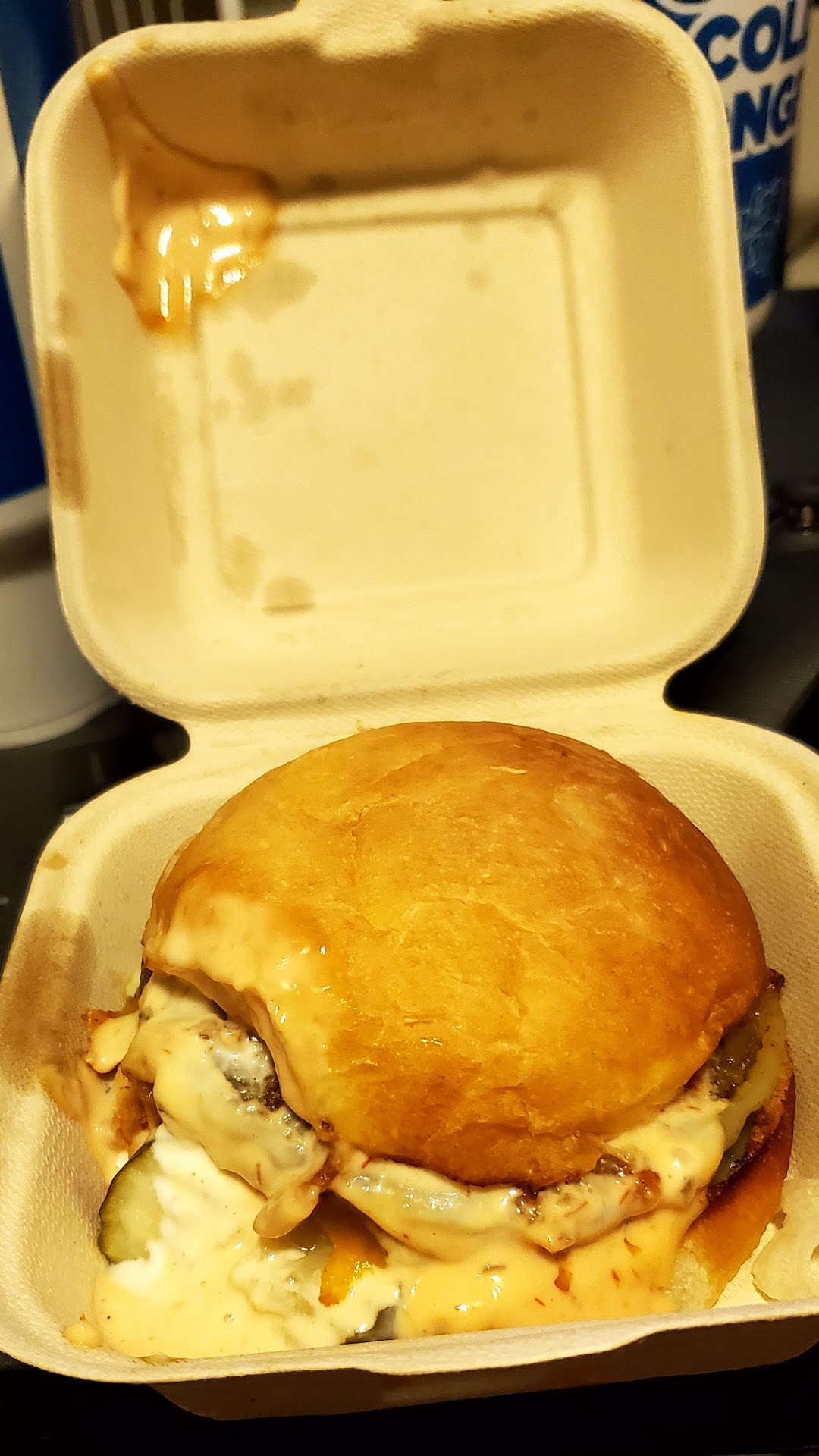I had high hopes for a good meal after reading many positive reviews. My order was placed (and paid for) online with a pickup of 7:06pm. I arrived at 7:10pm. I spent my time standing at the counter, trying to catch a someone’s attention. The employees behind the counter were very busy, keeping their eyes down, focused on their work. After waiting 15 minutes, I was asked my name. The burgers, which had been sitting on the counter when I arrived, were bagged along with fries, which were fresh out of the fry basket. The employee (whose attention I had been trying to get since walking in), mumbled an insincere and unconvincing “sorry for your wait”. No condiments were offered, almost sacrilegious - burger and fries without ketchup and mustard! It took 3 minutes to get back to my motel room. The burgers were room temperature and greasy. The fries (both regular and sweet potato) were unappealing, looking floppy and oily. The restaurant may have good food, but the online ordering system failed me. If I hadn’t already paid online, I would have walked out.