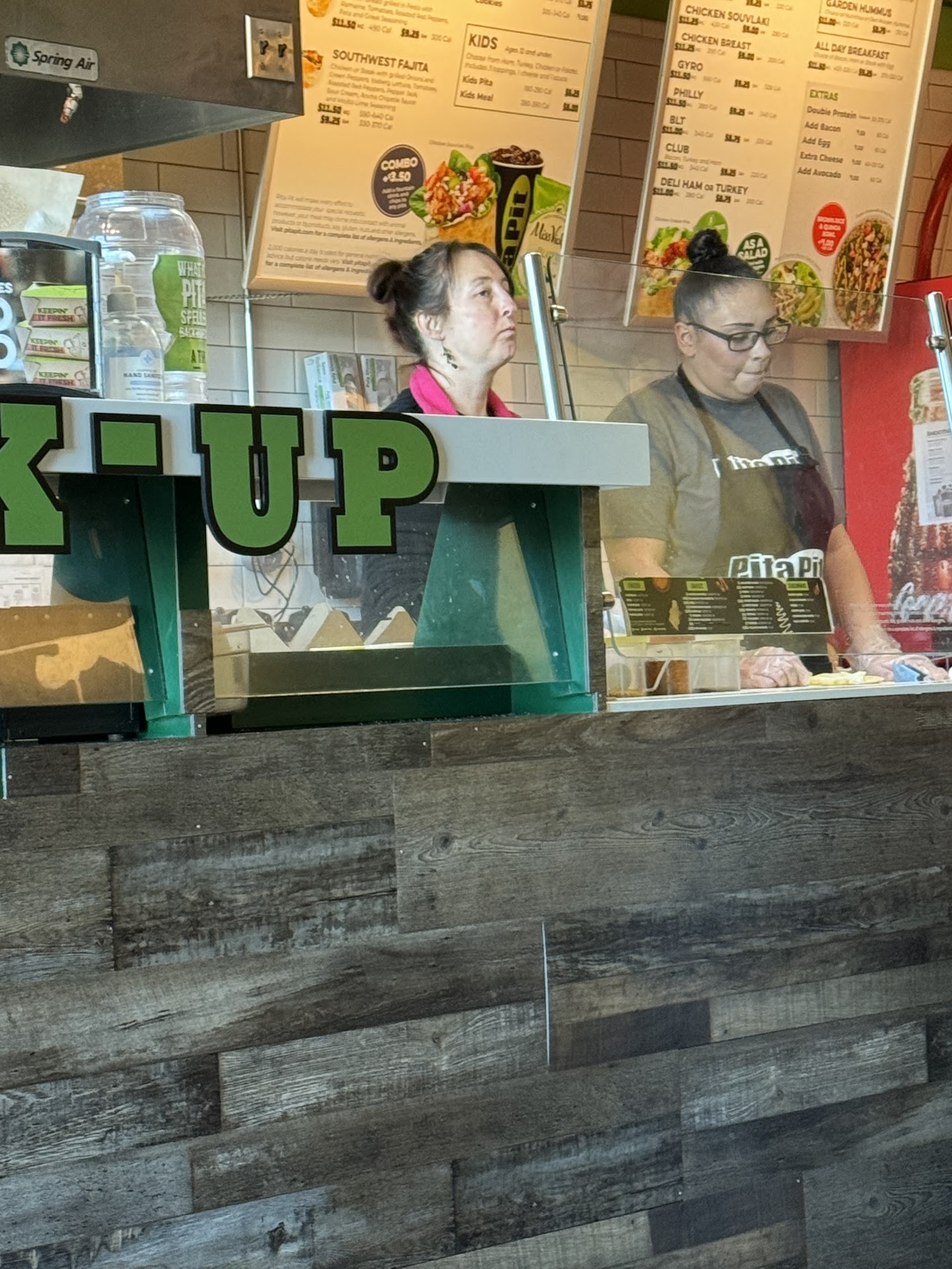 Read moreCame in today to get a pita with my mom. The 3 employees that were working were in the back and came our very slowly. The gal taking our order was so quiet we has to ask multiple times what she was asking. Once we ordered the guy making the pitas had to throw two away because he kept ripping them and than my moms stoll had a big hole. I got mine made and he ripped it and had to get a new one, he put the toppings on the counter and moved them over to the other one. He was very slow and didn't seem like he was in his right mind. Terrible customer service. We will not be...