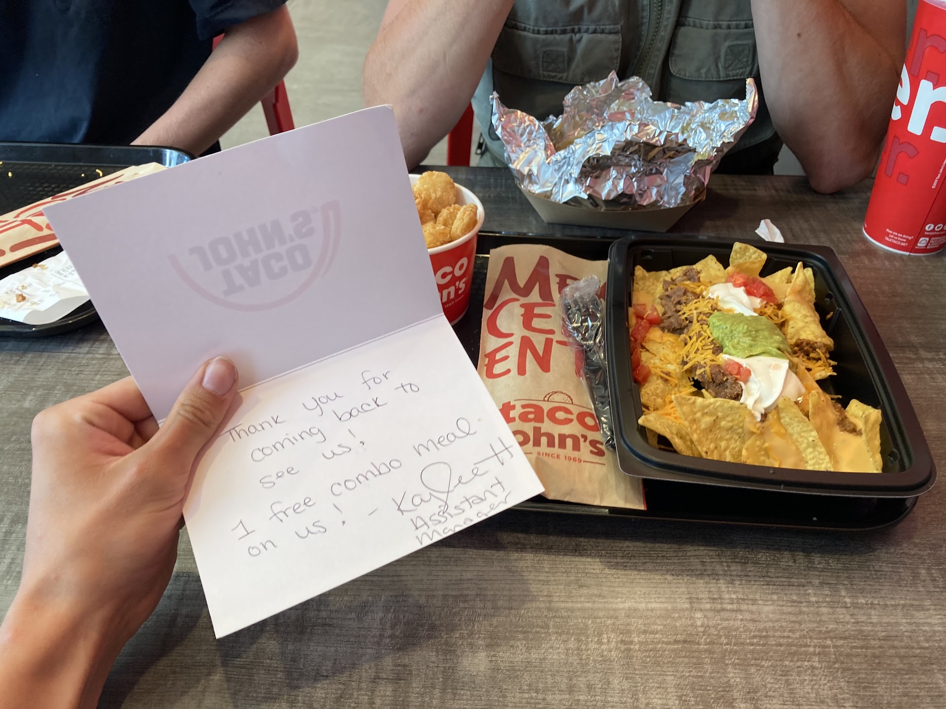 Read moreSo we was in the drive thru at taco johns tonight. There was a vehicle in front of us who was able to order. We pulled up was greeted asked what we wanted and we ordered the food we wanted. The guy after taking our order got back on the speaker saying I'm sorry we closed at 10 and we can't make your order, after asking what we wanted and saying alright anything else we wanted. We was there before 10 his excuse is a lie I know cuz my son use to work for taco johns computers systems don't just shut off. They just didn't want to make the food and came up with an excuse. I have corporate numbers. I also tried calling to speak to manager no answered. What if I was that vehicle ahead of me who got food and he had messed up order. Your neglect and refusal of service will be brought to cooperate and high...