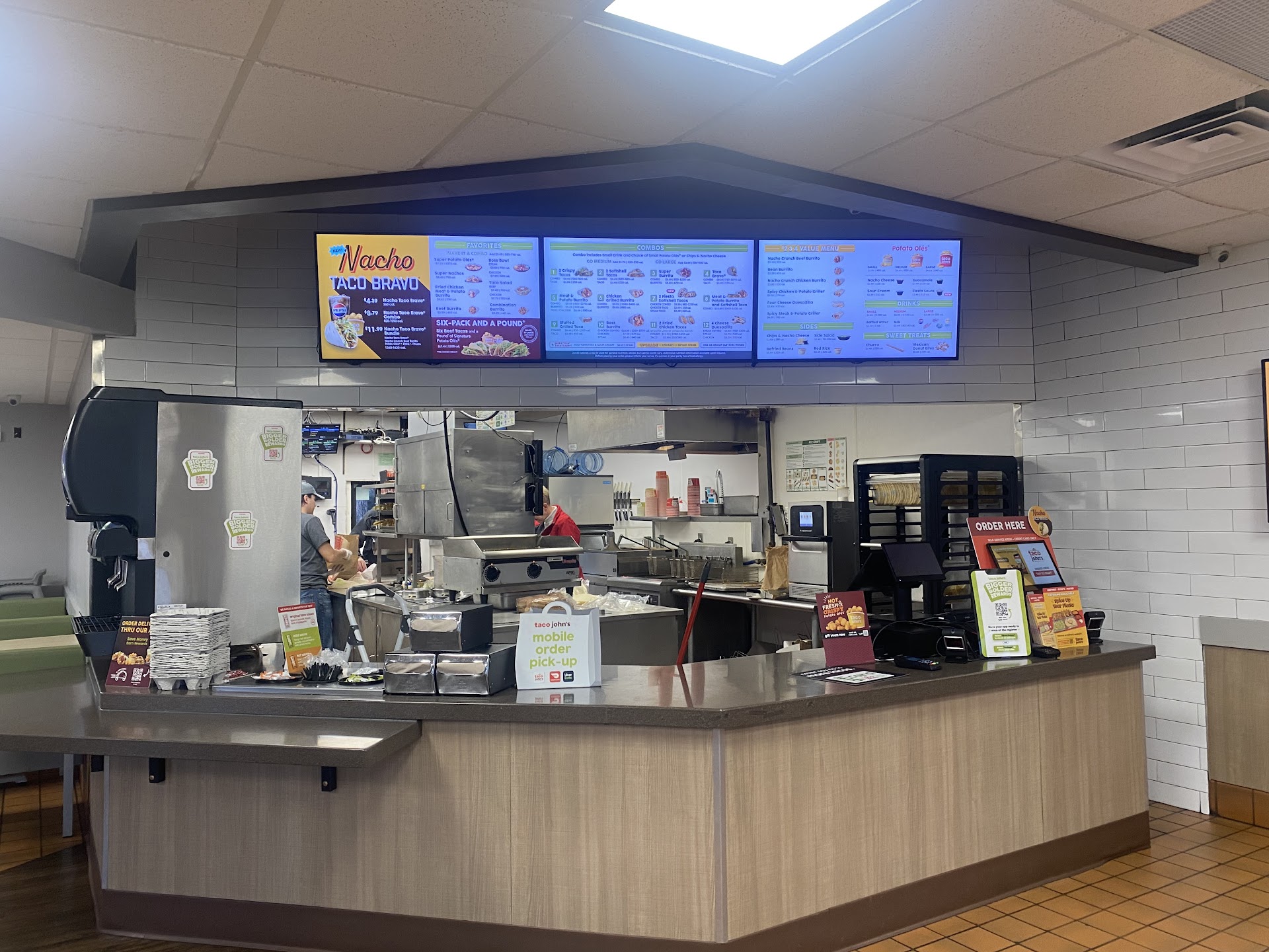 Read moreI love to go to Taco John's over Taco Bell any day because of the quality differences.. but friday afternoon (feb. 22, 2019) it was one of my worst experiences by far.. My food was all crammed into one bag which then smashed all of my food.. I got a $25 plus order: 2 grilled tacos, 6-pack mexi rolls, street taco trio (steak), a softshell, and a medium order of oles with sour cream/ nacho cheese (all in one bag). I was disappointed by the presentation because the standards are always higher.. the street tacos were primarily fat than steak, the soft shells were split down the middle.. the grilled tacos were like mush and had a weird texture to them. While eating the food with my gf, we noticed it had a different taste to it.. I'm super disappointed because I have been to this location plenty of times, but will now avoid it when and if possible.. i have great experiences at EVERY other location than this...