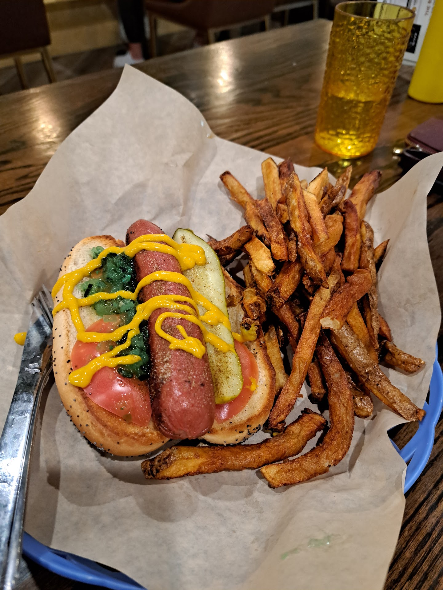 Read moreWe arrived here about 30 minutes before they closed. We generally don't go anywhere writing an hour of someplace closing. Wife's weird rule. But we did. Smelled good as soon as we got out of car. Place was almost packed. Entire menu looked appetizing. We ordered food to go but ended up eating it at the bar top instead since some space opened up and seemed more appealing than eating in the car. The couple next to us said they'd been there a couple times and loved it. I ordered a mushroom burger and wife ordered a green chili burger. We both enjoyed them. The homemade fries were delicious too.
