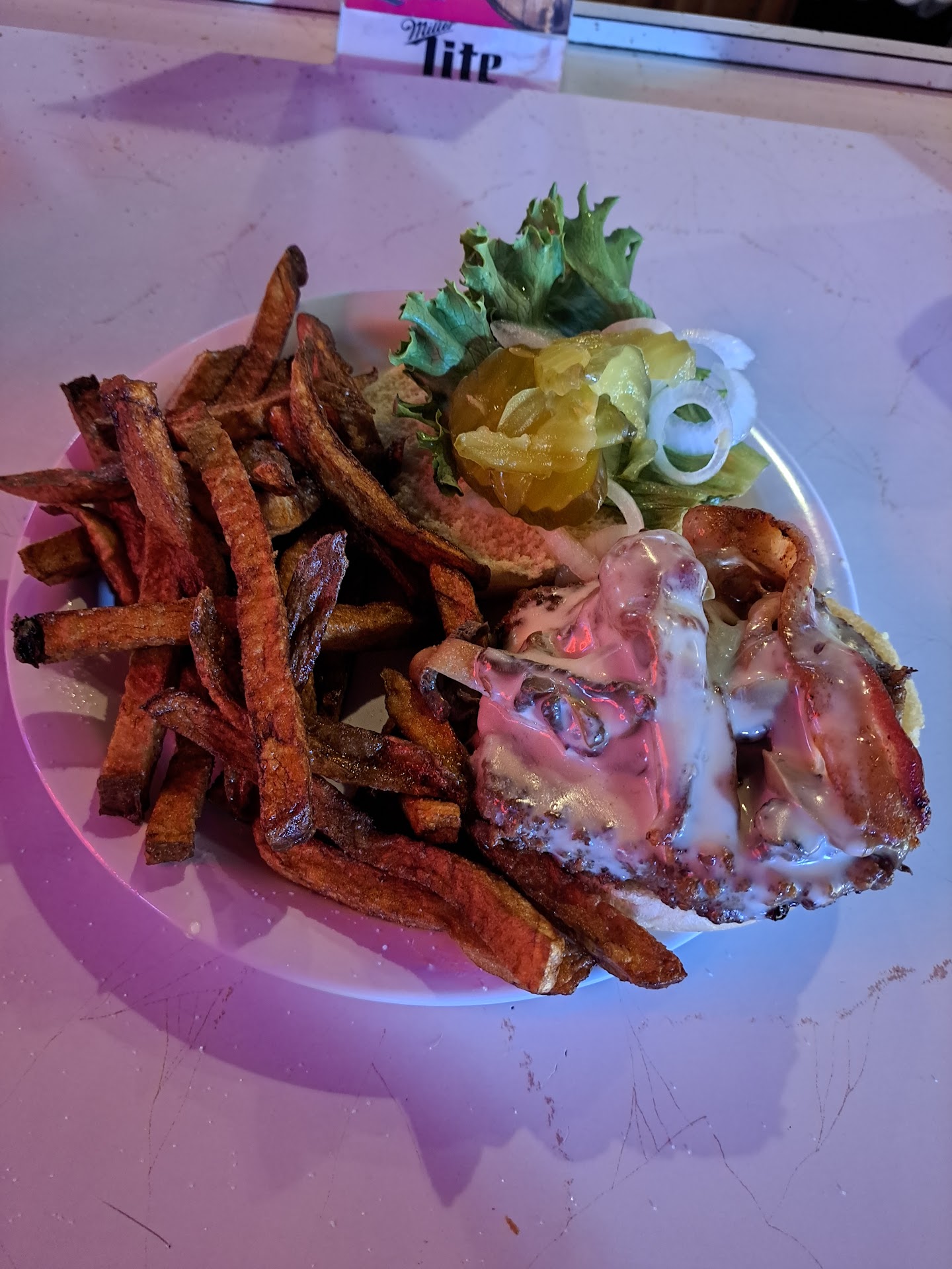 Read moreIt was not a good experience for our first time there. I'm not sure who the waitress was but she was at the same three tables the entire time, we had our (me and my boyfriend) drinks refilled once before we had to wait till the end of our meal (hr and a half) for her to ask us if we wanted a refill. I asked for an Orange crush, WHICH BTW HAS THE SAME FONT AND NAME AS THE ORANGE CRUSH SODA, She sternly asked for my ID and I didn't know it was alcoholic so When I asked her if that was why she wanted my ID, she gave me a look like "Duh", I understand that she needs to ask for ID for alcohol, but she did not need to handle that interaction with such a rude tone. (We are 19) We ordered a Vegetable Melody, The Fish and Chips special, The Bacon Mushroom and Swiss Burger, and The Bacon Ranch Flatbread. The foods that stood out were the burger, it was juicy and had a good flavor, I wish I would have gotten that one 😭 And the Tartar sauce was very yummy, the Flatbread was alright, and the vegetable melody was as good as Normal Broccoli, Carrots and Celery get. Overall it was a Meh experience and we had to wait another 20 minutes for us to get our ticket paid for. We were there for 2 hours and most of that time was spent waiting for our food (40ish mins) (20 mins for drink refill) (20 mins for our ticket to be handled). For reference I thought they were offering the soda pictured. This also may just be a me thing but she was waiting more on my boyfriend than me, I assume because she thought he was paying, but that was a little...