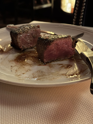 The Caesar salad and spinach salad were decent, but our filets were over-cooked and extremely salty. We even ordered a red wine sauce after we tasted it to hopefully tame it down, but even it was very salty. The creamed spinach was pretty good, but it was also very salty. Just so you know, I’m a salt fan, so when I say everything was over-salted, it truly was. We drank lots and lots of club soda.