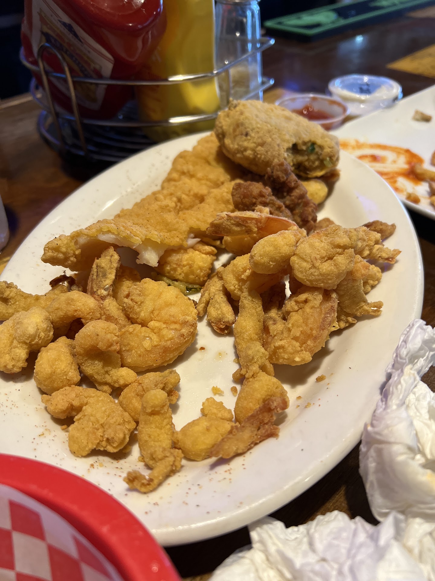 Read moreI went with my family this evening for dinner, my first visit there. It was Saturday evening at about 7:30, and we had a party of 6. There were not many people, so we didn't have any wait. Upon entry, the very friendly and energetic waitress politely greeted us and put a couple of tables together before we even had to ask. She was very friendly the entire time and kept drinks filled. We placed our order, food came quickly, and it was cooked fresh and was hot. More on the food. First, I wasn't really impressed with the menu, but I knew that going in (it wouldn't have been a place I personally would have chosen, as most of the options are fried foods). I went with the grilled shrimp basket. The shrimp was seasoned decently but was still lacking something. It was also very, very greasy. It also had a wang to it that even cocktail sauce wouldn't kill. I was expecting large shrimp, but these were not large, and I am almost positive they were not fresh from the gulf. The number of pieces they gave was acceptable, though.