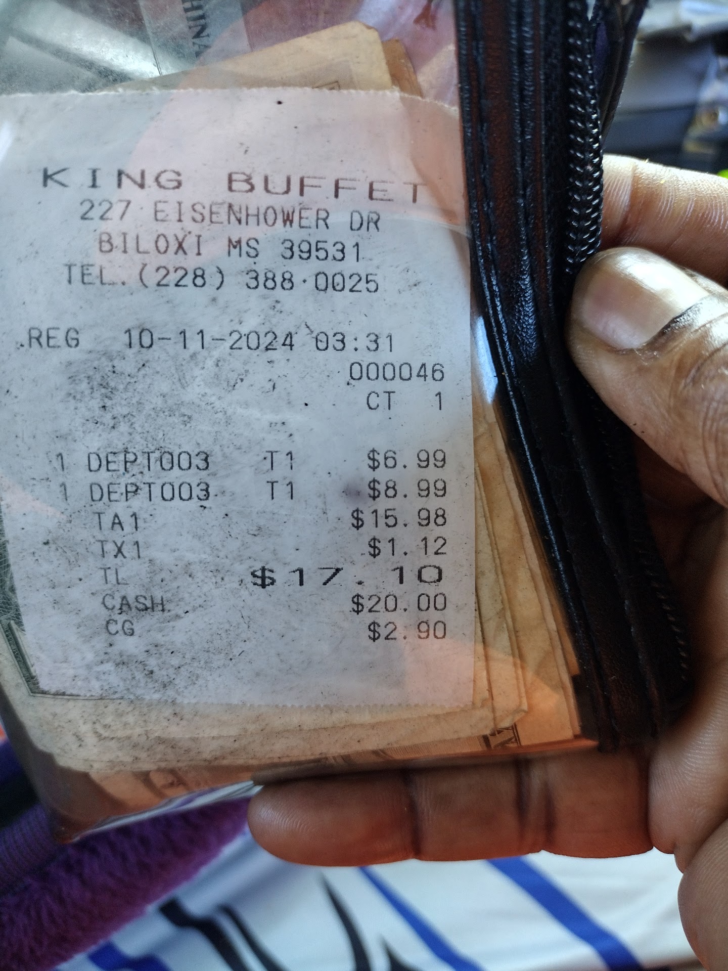 Read moreManagement very rude! I was there with my family during a vacation in Biloxi. My 3 years old son just ate a lot of leftovers of food I cooked the night before, when I was still home. So when we arrived at the buffet, he was everything but hungry. I told the server he was not going to eat and she was cool. While I was eating, my son grabbed a piece of brad from my plate. The manager, who was following me everywhere, started yelling at me "your baby is eating so you have to pay $8.75 plus tax". I told her that she was rude to yell at me that way and that the baby just grabbed a piece of brad, that's it. I asked if I could just pay that extra piece of brad. She kept yelling at me in front of other customers. That was ridiculous. $8.75 plus tax for a piece of brad. The buffet and the bathroom were dirty by the way. It's plenty of better places in Biloxi. Do yourself a favor. Don't go to...