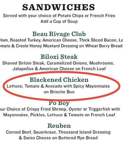 Read moreCalled in an order for pick up. I ordered the Blackened Chicken Sandwich with no avocado (that’s about the only thing they got right). I requested regular Mayo, instead of the spicy kind that’s advertised as what’s normally included. Well I guess Chef Boyardee didn’t appreciate the substitution request and instead just gave me a a bland sandwich with no Mayo at all. Along with the lack of Mayo I received one wilted, slimy piece of partially brown lettuce that had salmonella written all over it. But as if that wasn’t enough they decided to go one step further and add some strong smelling red onions, that I never asked for and according to their menu is not even included on the sandwich. I will say, that the French fries were decent, but true to character they forgot to include ketchup as I specifically asked for. Also, no utensils or napkins were included with the meal. If there is one thing that I would want you to learn from my bad experience is to please do NOT do like me and pay your bill AND include a generous tip without at least putting eyes on your food FIRST! They totally scammed me; had me paying for food that wasn’t even ready yet. I ended up having to wait an extra 20 minutes on top of the original 30 minutes quoted wait time. Unless you’re absolutely starving; I recommend you take your’...