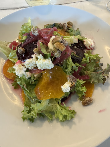 Read moreWe made 11am reservations for the Sunday brunch and left about 1:15. I'm not sure if service is always slow, or if yesterday was abnormal. The hostess and wait staff were wonderful. My husband had the baked mozzarella which was mostly tomato soup with a few pieces of mozzarella. I had the beet salad which they did really well. I was going to try the burrata, but by 11 they were already out of. For our entrees I had three smoked salmon with a poached egg, hollandaise, potatoes and another cream sauce. This was a very well prepared dish. My husband had the roast beef hash. This was a disaster of a dish. It was supposed to be smashed fingerling potatoes topped with freshly shaved roast beef. It ended up being the potatoes with dried shoe leather over the top. They put everything in miniature cast iron skillets and baked it after putting the roast beef on top. What was worse is the 3 course brunch was $35 per person, then most dishes were an additional premium price. I don't have any problem paying for good food, but the treatment of this roast beef was not worth premium. And dessert was terrible. My husband decided on the chocolate, cherry cookie which was nothing special. I went with the fruit crumble that was just hot, fruit soup. I never really found the crumble part. I expected better execution of a limited menu. If you want a good atmosphere it is a beautiful venue, but the food was not...