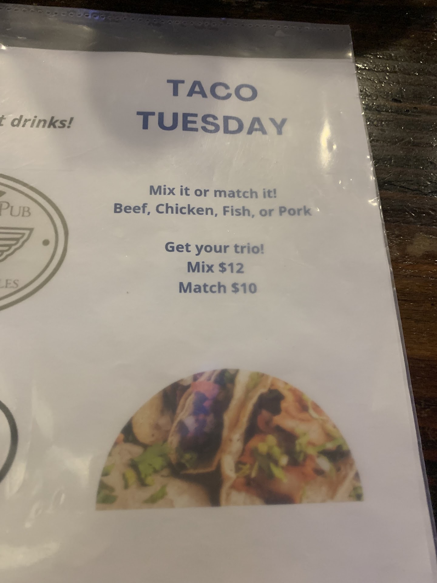 1/3/23, 8:30pm, Tuesday. If you are looking for a casual chill bar with lots of drink options, and maybe throw some darts, this is your place! This was post holiday weekend a little later on a Tuesday night, so not much happening. There were less than 10 people in the place. Clean, great atmosphere, awesome bartender, very delicious tacos for Taco Tuesday! The surrounding area before this 1/4 - 1/2 mile strip of bars was industrial and a little run down with some litter. But this area and strip of bars was clean and inviting