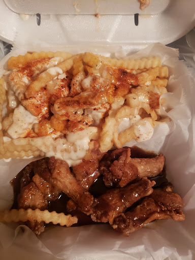 Read moreFirst, lets start out with no social distancing or masks required, like Covid does not include them. They use to be the best place to get wings and fries. I went in and ordered teriyaki wins and cajun ranch fries. The chicken had feathers on them, they were old, and only drizzled teriyaki across them, and the fries were not even warm but looked delicious. I tried to get them to remake my order, and they said they would only remake the wins and not the fries, and not give me all flats even tho I paid for them. I won't...