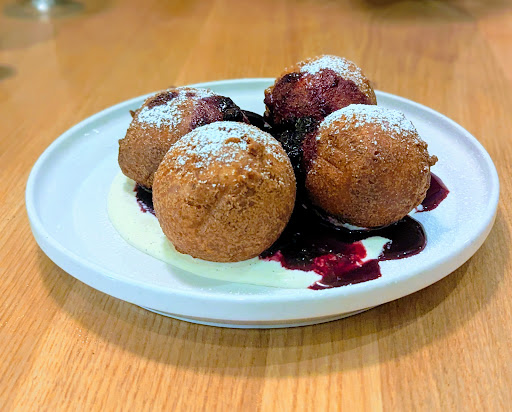 🥧 Dessert To finish, we shared a fried donut reminiscent of a beignet, dusted with powdered sugar and served with a blueberry compote. Warm and crisp on the outside, soft on the inside—this dessert was a delightful finale. The blueberry compote added just the right touch of sweetness without overpowering the dish.