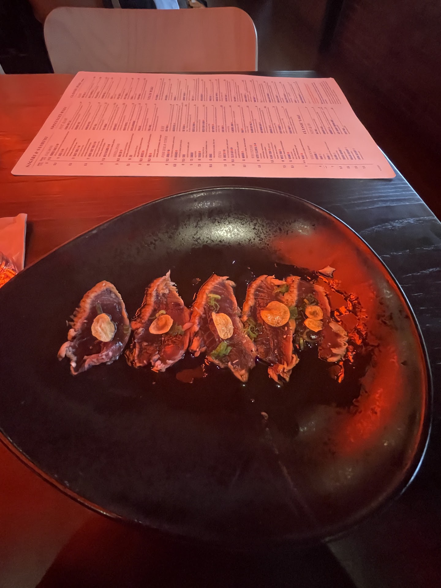 When we finally sat down, the waiter seemed a bit, um, stressed. I told her that we're easy customers and that she can be cool, but that didn't seemed to work. Me an my wife tried cracking a few joke with her and smiled and tried to be nice, but she simply wasn't up for smile because she was... somewhere else (đ§ up here). She wasn't rude or bad, but service just wasn't there. Kindness, smiles, attention, conversation, etc. it just wasn't there.