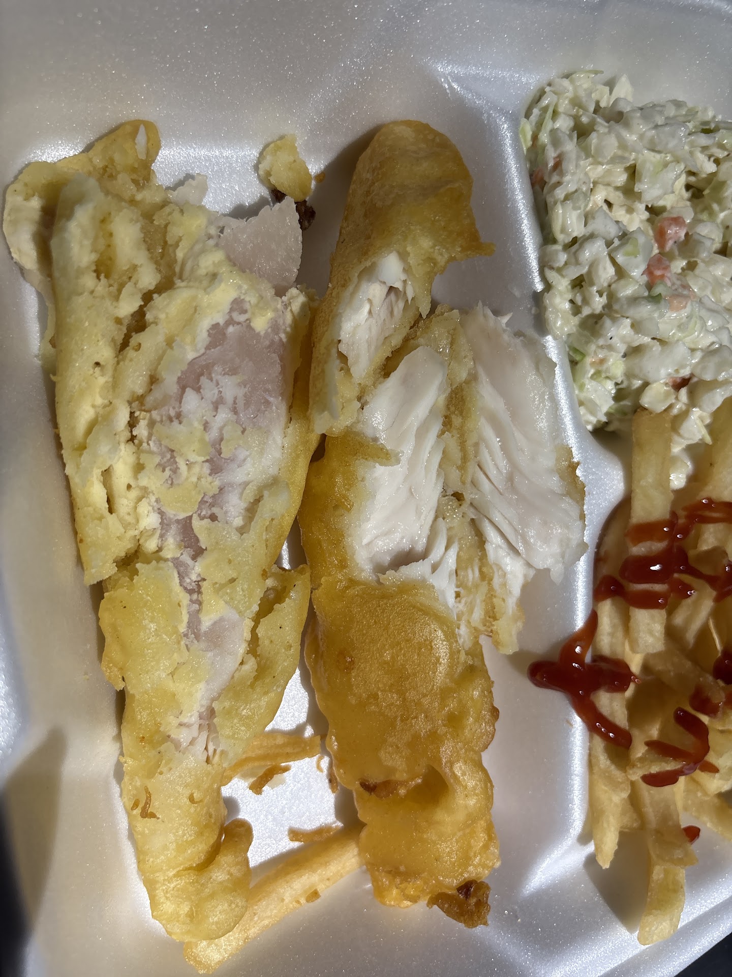 Read moreMy fish hush puppies and broccoli were hot even though the broccoli had no flavor. The french fries weren’t quite fresh even though the store had just opened up. They were out of coleslaw so I had to get the broccoli instead not my favorite. The service was good. They were in a good mood for having to deal with a leak and they were having to clean up a mess when I first walked in, but they got my order together in a timely fashion is the store isn’t just disrepair and needs of a major makeover, I wish that they would bring back the pumps for the condiment sauces and also the original way that they used to cook the fish 20 something years ago. That was the best. not sure what was going on with the what looked like ant beds in the...