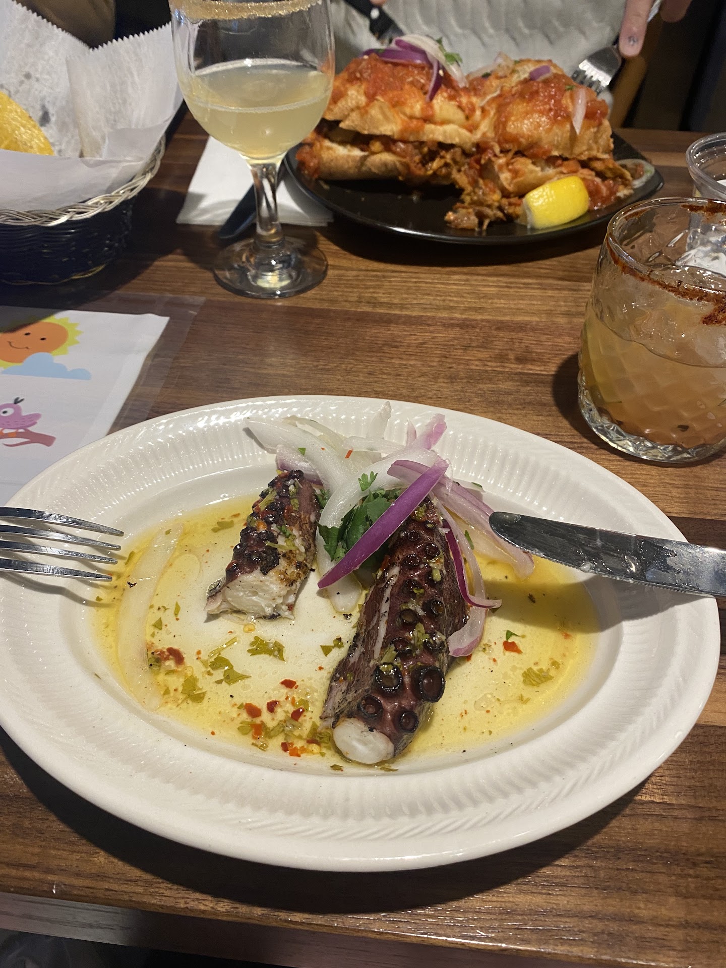 Last thing: if you order the octopus just be aware that you are going to pay 18 bucks just for two small pieces. (I ate half of a piece before I took the picture).