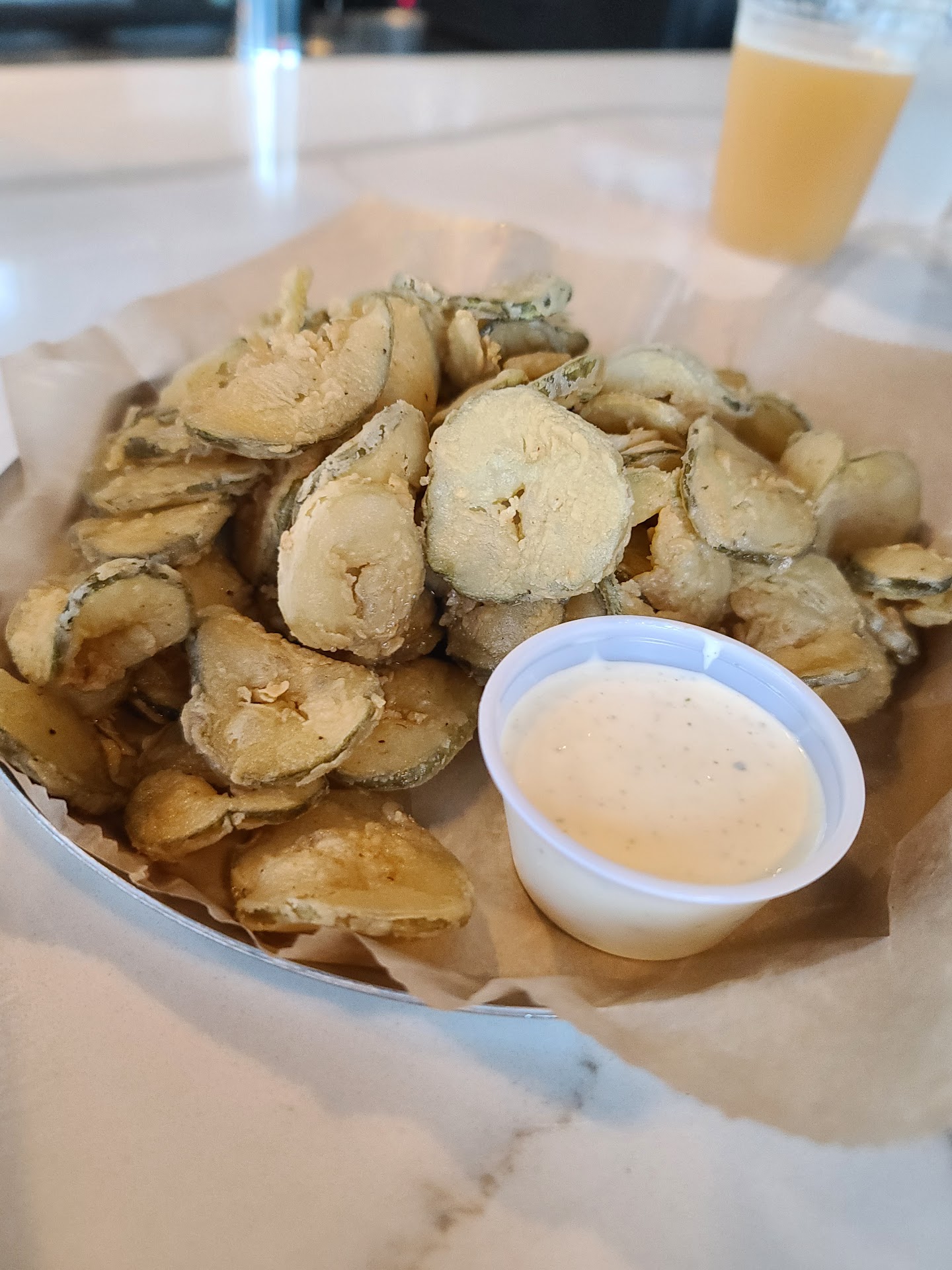Read moreDrinks were delicious, food was SALTY and greasy. So salty we could feel our ankles swelling as we sat there. The "roasted" brussels sprouts side was most definitely deep fried and inedibly salty. The smash burger was not hot, burgers were 1/8" thick, dry, flavorless and seemed slightly freezer-burned, but the entire thing was somehow SALTY, as in someone played a prank salty. The beet crostini was yummy, but each 5-6" one had only 3-4 nickel-sized slivers of beet, MAYBE a quarter of an entire preemie-baby beet, maybe, in the entire dish and a whisper of goat cheese...(PLENTY of honey though). French dip...bready and salty. Fried pickles were supposed to be panko-coated. They were absolutely not and were solidly mediocre. (We ate them, bc who can't eat fried pickles) Overall, this was just not great or even very good. None of the food was particularly hot. I totally understand the challenges the restaurant industry faces right now, but this was just a little on the gross side. Also, I'm by no means salt-phobic..this...