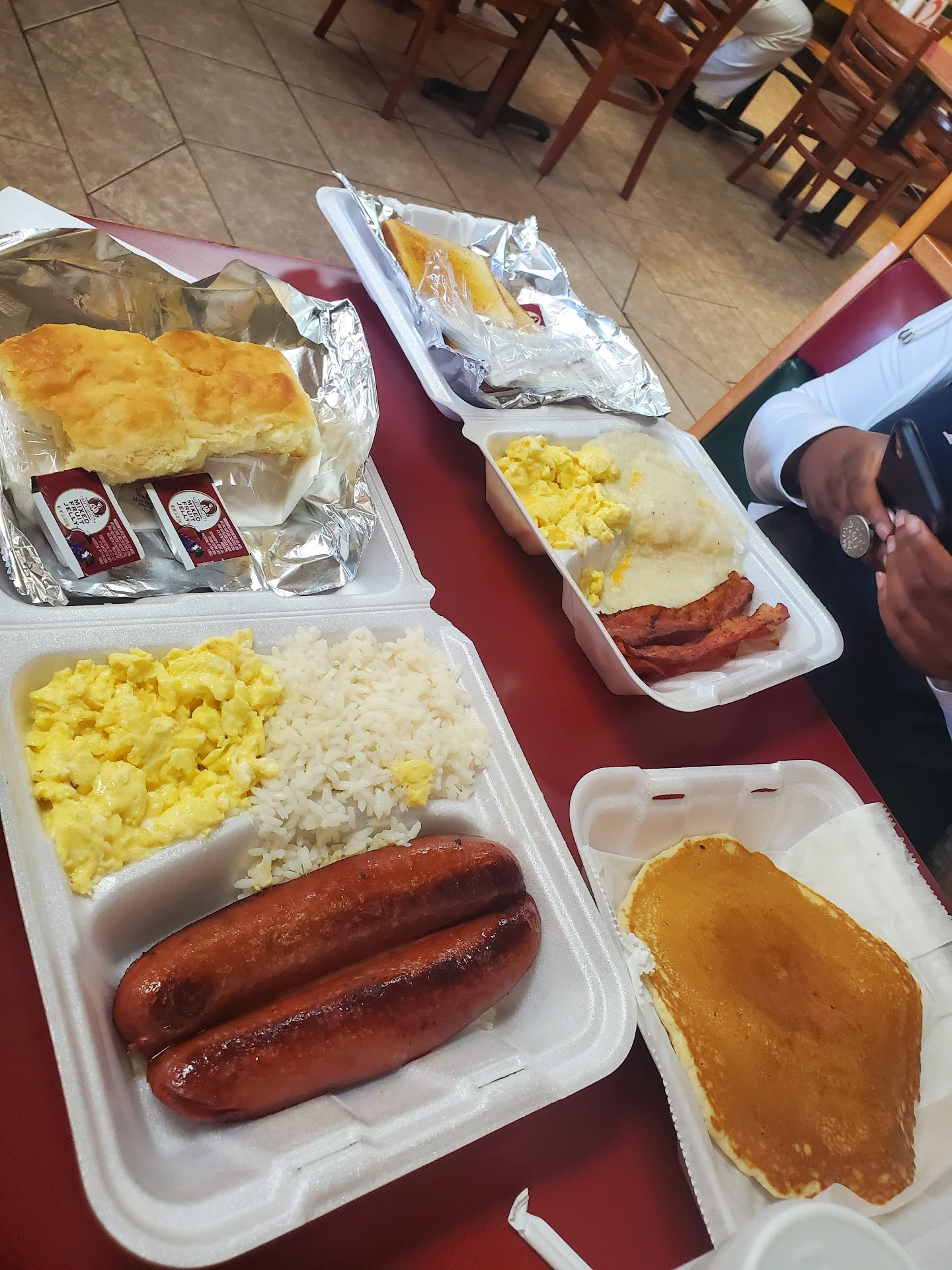 So apparently if you Google this place there's a slew of things on the menu that when you get there none of these things are what they actually serve anymore the waitress and I had a good laugh about what they don't serve and the menu I was looking at so steak and eggs and Mediterranean dish all of that not their asparagus dish not there so the thing is is if you sit there and I know it's been there for years and it's a staple for the neighborhood or the locals so if it's been around for years and they're doing quite well if you look around it's a lot that need to be repaired replaced remodeled or cleaned you may not even have to remodel but you definitely need to clean it I know some people will just eat anywhere if the food is good and they consider that a healthy greasy spoon service is with a smile and great that'll keep you coming back but the plethora of things that I saw on the menu was a disappointment to what I had my mind set on eating so I had to settle for a egg omelette that came with sauteed onions no veggies but it was supposed to be and turkey sausage flattened round two and two slices of toast the coffee is so watered down you can see straight through it in your cup again people have been going here for years and swear by it so I decided to try it that's my review I know they could care less but I won't be back. Before the sake of people not from Alabama at least go on the internet and care enough about updating with the menu actually is Not to mention I watched a lady at the counter poor either coffee or tea back into the silver container sitting on the I don't know if she made it or it came from a table I just know it wasn't a good site to see her point coffee or tea back into the decanter that sits on the counter that they got my coffee from when I saw that I just scooted my cup over to the side and did no longer want any more of...