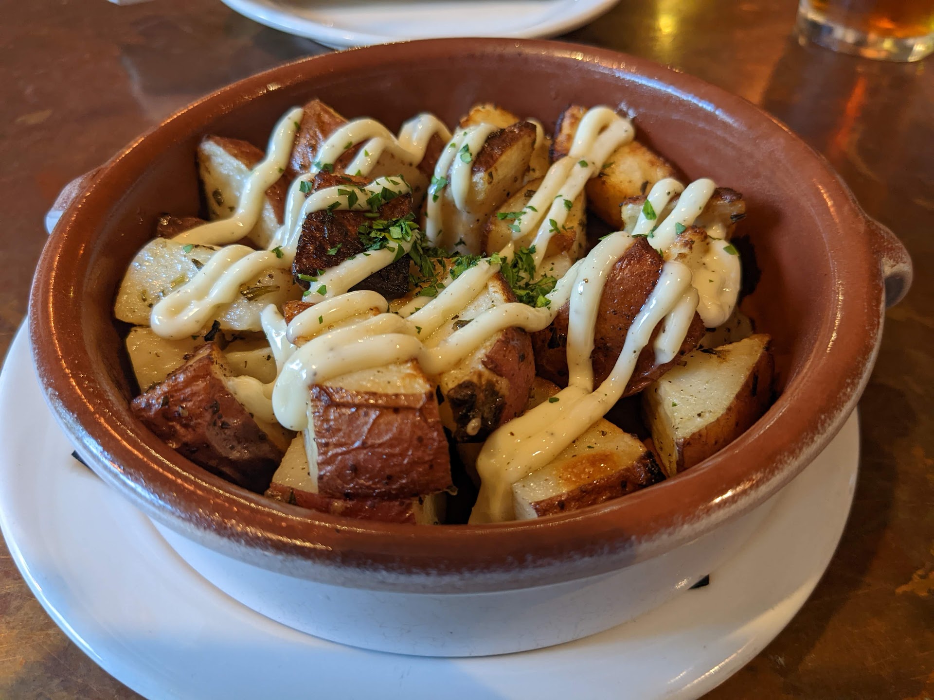 Since we were part of a large group, we decided to explore various options from the menu. The charcuterie board was absolutely amazing! The large portion was generous enough for all six of us to savor. We also indulged in several other appetizers, all of which were delightful. However, the truffle roasted taters stood out as the clear favorite among everyone. Oh, and I can't forget to mention the desserts! We couldn't resist trying the affocato and almond tartes, and they were incredible!