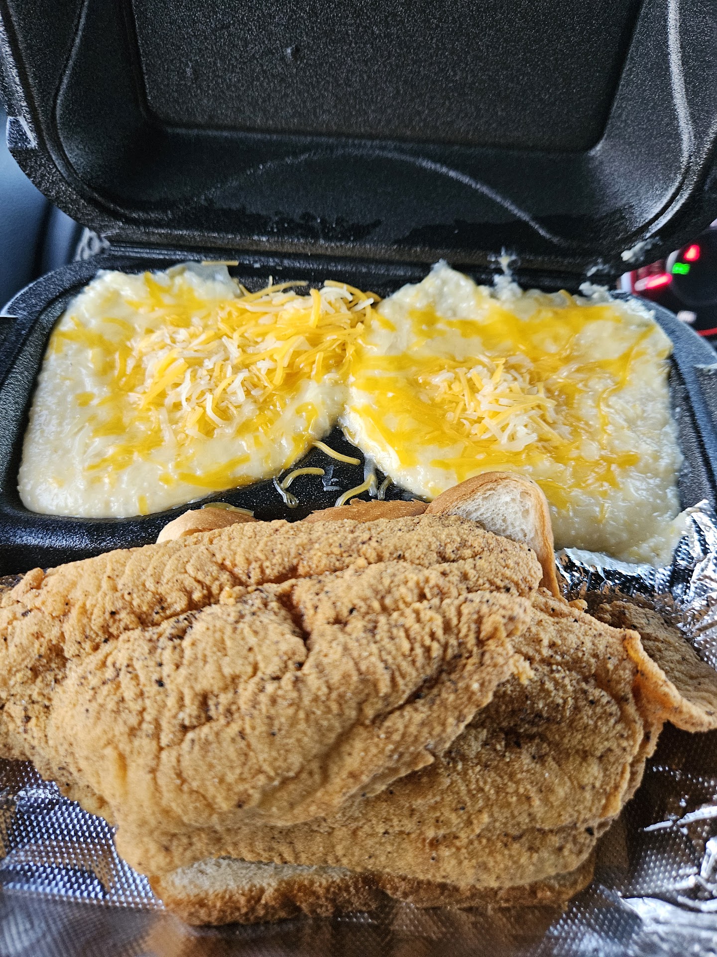 ✨Highly recommend the hot lemon pepper fish.🔥 The GRITS are just right with topping options.🥣 Fried Okra fried to perfection. Fries are crispy🍟 Check granny's Facebook or Instagram for her daily location and hrs.💯 FOLLOW FOR VIDEO REVIEWS @GHSTLENS TIKTOK | INSTAGRAM | YOUTUBE