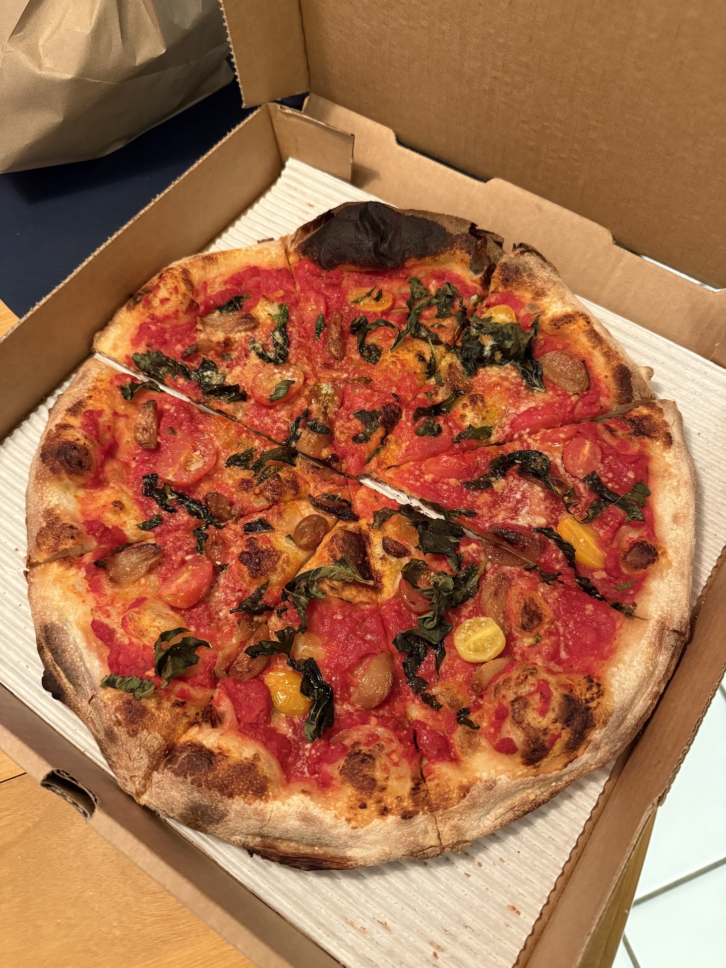 Do not understand the rave reviews. Stopped by mid day. Crust was so burnt that he (owner) was cutting most of it off. The pizza slice could not even be held - so limp. The ‘toppings’ what there was of them (cheese and pepperoni -I actually paid for double pep- what a sad joke on me). Left a generous tip. The top of the pizza, what there was of it, needed to be eaten with a spoon. This is a prolific chef … been around a long time at many restaurants. A real bummer as I’m on the hunt for great pizza. Unfortunately, in my experience, not here.