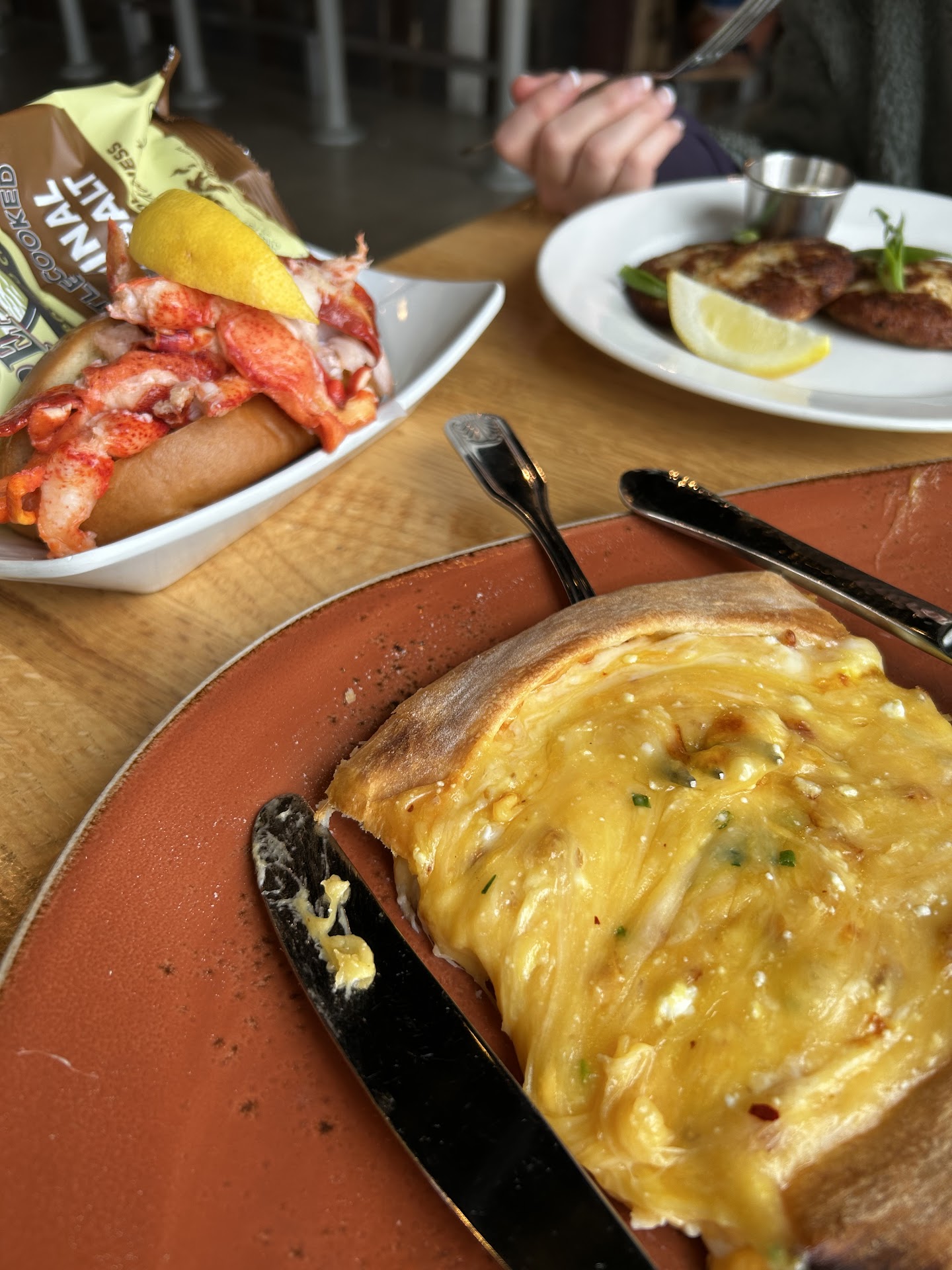 We wanted to order everything on the menu, but decided to stick mostly with our favorites. The whitefish pate was new to us and I have to say, it was the BEST I've ever had. I was tempted to order another to go, but restrained myself. We also share a bowl of the creamiest clam chowder. I didn't even think I liked clam chowder until I tried H,R,&D's version several years ago. For dinner my husband went with the Maine Lobster Roll (cold with mayo), while I love the Connecticut style (warm with butter). They are filled with lobster and absolutely decadent. We've been to Maine and these are every bit as good, if not better than the lobster rolls we ate there. We especially love that they are served on Texas Toast instead of a bun. We rounded out this feast with a side of crispy potatoes and corn-on-the-cob. Of course, it was more food than we could eat and we ended up taking the potatoes home for the next day.