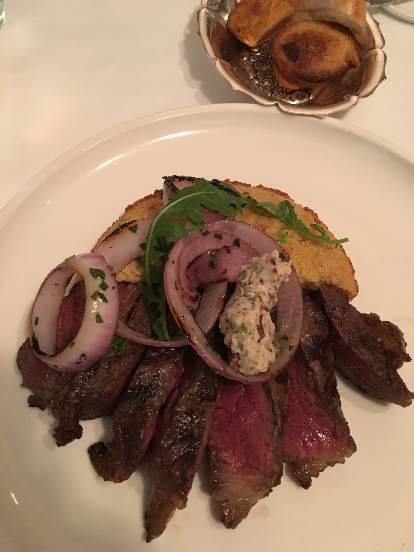 We shared the stone ground grits for our starter and it did not disappoint. She got the pork two ways and I got the New York strips. Both were amazing.