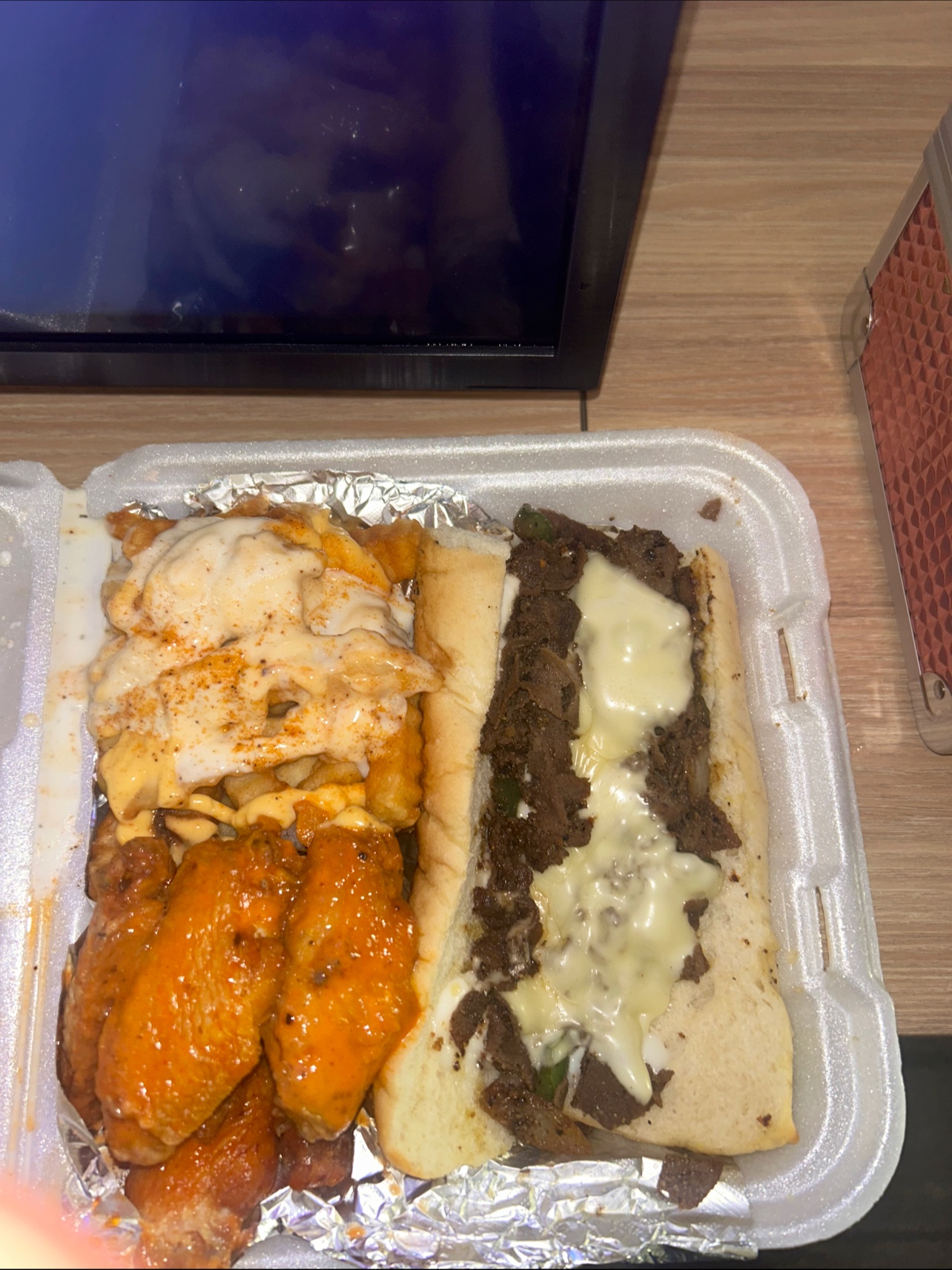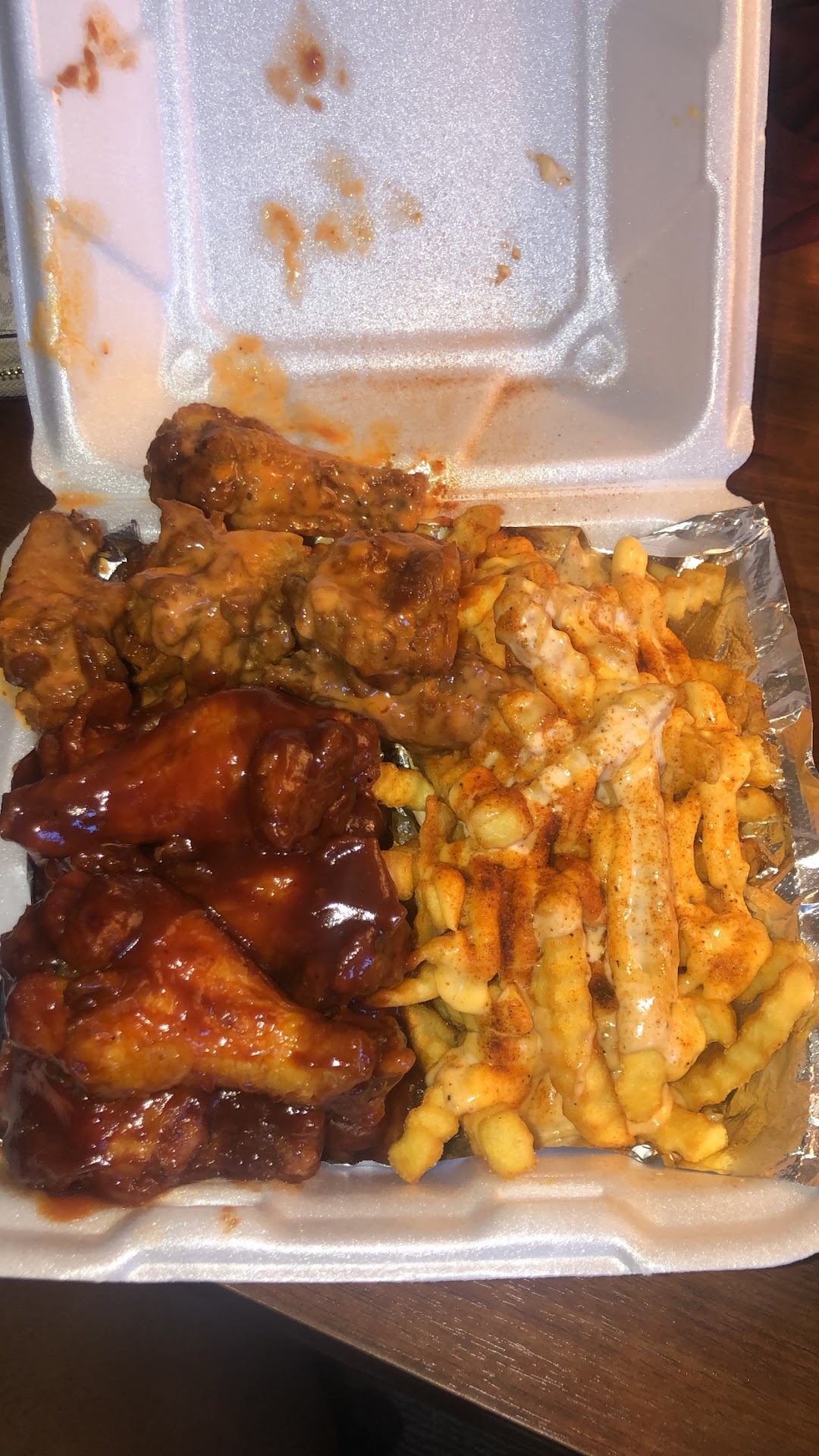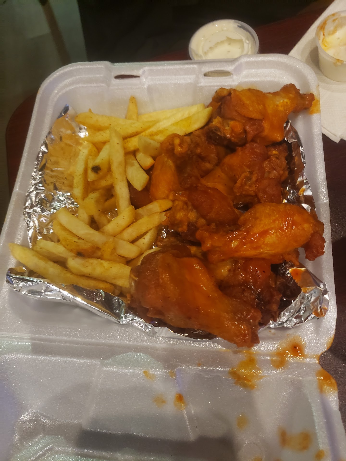 Read moreThe young cashier was very unprofessional. She should not have been on the register...period. Her attitude was awful, which should have been the cue for the food.She did not smile or greet us as we entered.We arrived as soon as J Wings opened so someone should have at least said "good morning". But sadly that didn't happen. We ordered all flats and were told it was too early for all flats. What?! But after receiving my order of hot and garlic parmesan wings with ranch(?)fries, I regretted ordering any thing at all. In most places if you order ranch fries, you receive a 32 ounce drink...nope. But a young man walked in an was GIVEN a 32 ounce cup just for coming in the door! The hot wing sauce (was terrible) is a mixture of ketchup and hot sauce...mostly ketchup. The wigs were large and tough. Needless to say the entire meal went where it belonged, in the trash and I will not...