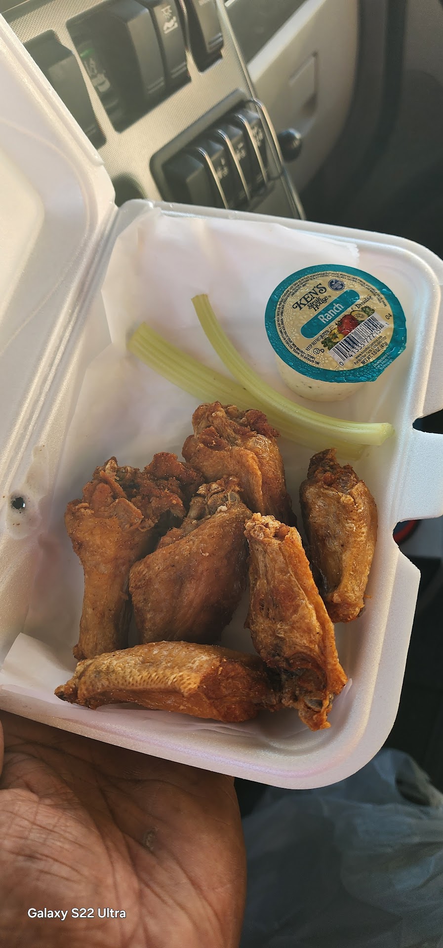 I ordered 6 wings fried hard with hot honey BBQ sauce on the side. Also, a whitening 2 PC sandwich.