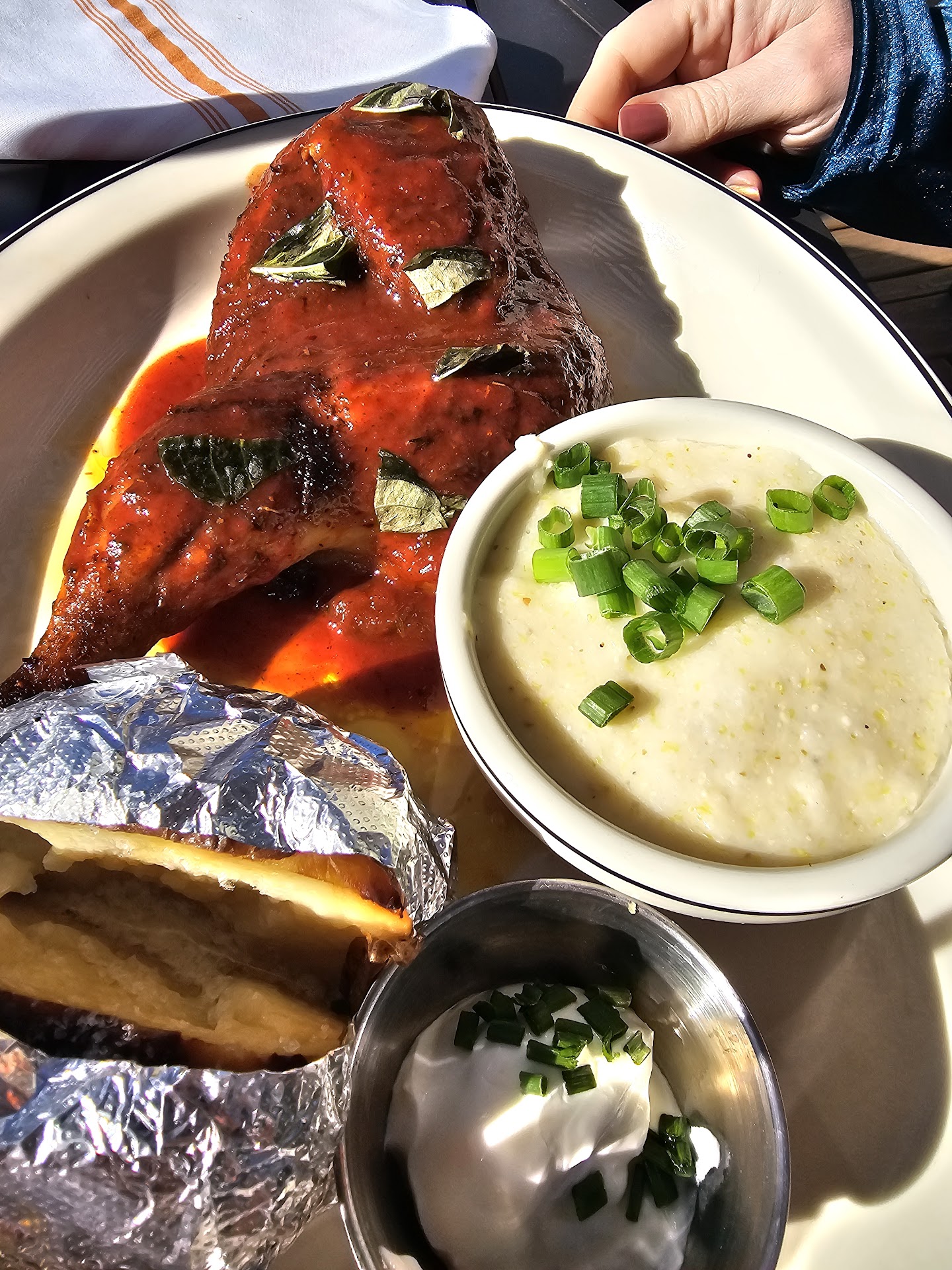 Read moreThis is a really cool spot. Outdoor seating is spacious and welcoming with a great atmosphere, the inside has great decor and the music is really good that they play overhead. The foot was great for me and my girlfriend, pictured below I got the shrimp and grits and she got the blackened chicken. Beer selection was great and we got a plate of their hush puppies on the house which was nice of them. One of my family members has an allergy to most meats, so he opted for a salad. The first salad he requested was rejected due to them not having one of the components of the salad in stock at the moment, weird to not specify which component and work with the customer to still get that salad. The other one he opted for came quite drenched in vinaigrette, so much so he had to pour some out into a bowl to continue with his salad. We also ordered some food to go and again they were missing one component of it and redirected us to order something else, I insisted that we're okay with it missing one part of it as long as that's allowed. The server was a nice guy but had an air of cluelessness about him on stuff like that, a new restaurant so I don't blame them for still trying to figure things out. We were never told and it doesn't say on the menu no alterations, so for us to be immediately redirected to ordering something else as opposed to being worked with on the menu was a little frustrating. If you have any vegetarian or vegan friends, or in my case someone with an allergy, this spot definitely excels at making good food outside of their salads and don't bring anyone picky because it's weirdly like pulling teeth to get something worked out. Otherwise, it was a good spot. Will be back for drinks again on a day with nice weather, but will potentially dodge the headaches that came with ordering food. That may go away with time once this restaurant settles, will update review if they get...