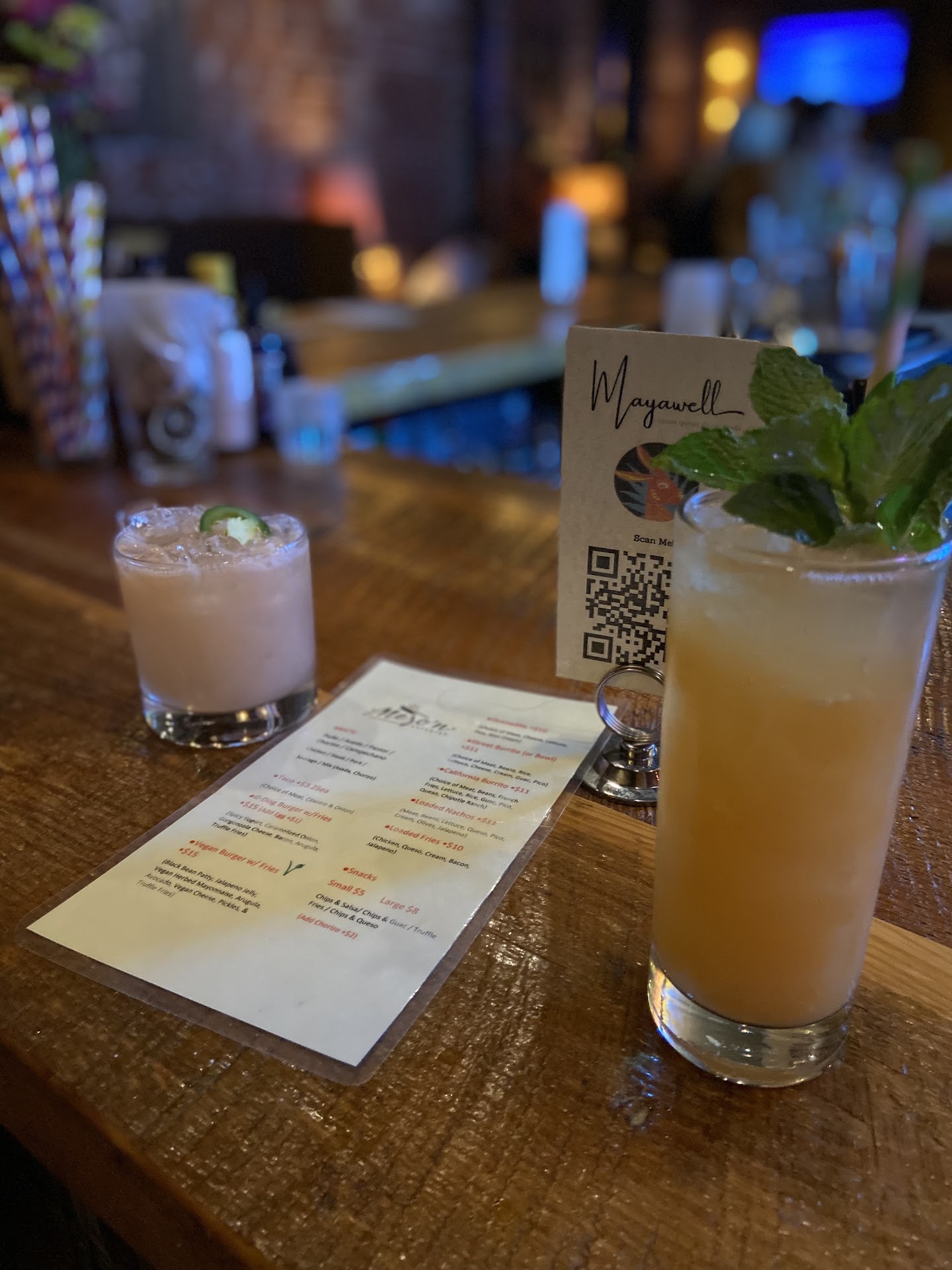 My husband and I were excited to have a night cap here. We walked into this bar at about 9:30. Read the sign that said to seat yourself so we did at the bar. The seating arrangements are cozy. Most of the staff was at the other end of the bar by the kitchen. We waited and in the meantime scanned the QR code to see the menu. GREAT selection of tequila based drinks. A very friendly young lady came and took our drink orders. She was great. I had Chefâs Kiss and my husband Cool your jets. While we sat and had our drinks we took in the ambiance which was mellow and nice. There was another woman behind the bar cleaning and wiping things constantly where we were sitting. No excuse me, no greeting and no interaction at all. My husband decided to inquire about a booth he saw in the back corner and thatâs when things took a disappointing turn for us. He tried asking the woman that was behind the bar cleaning about the booth, first she said it was reserved for a group of 8 or more. Then she said it was first come first serve. When my husband tired to gain clarity she brushed him off and said I donât know to everything he asked. The last thing he asked was for her to cash us out because her shortness made us feel unwanted in the establishment. Thatâs...
