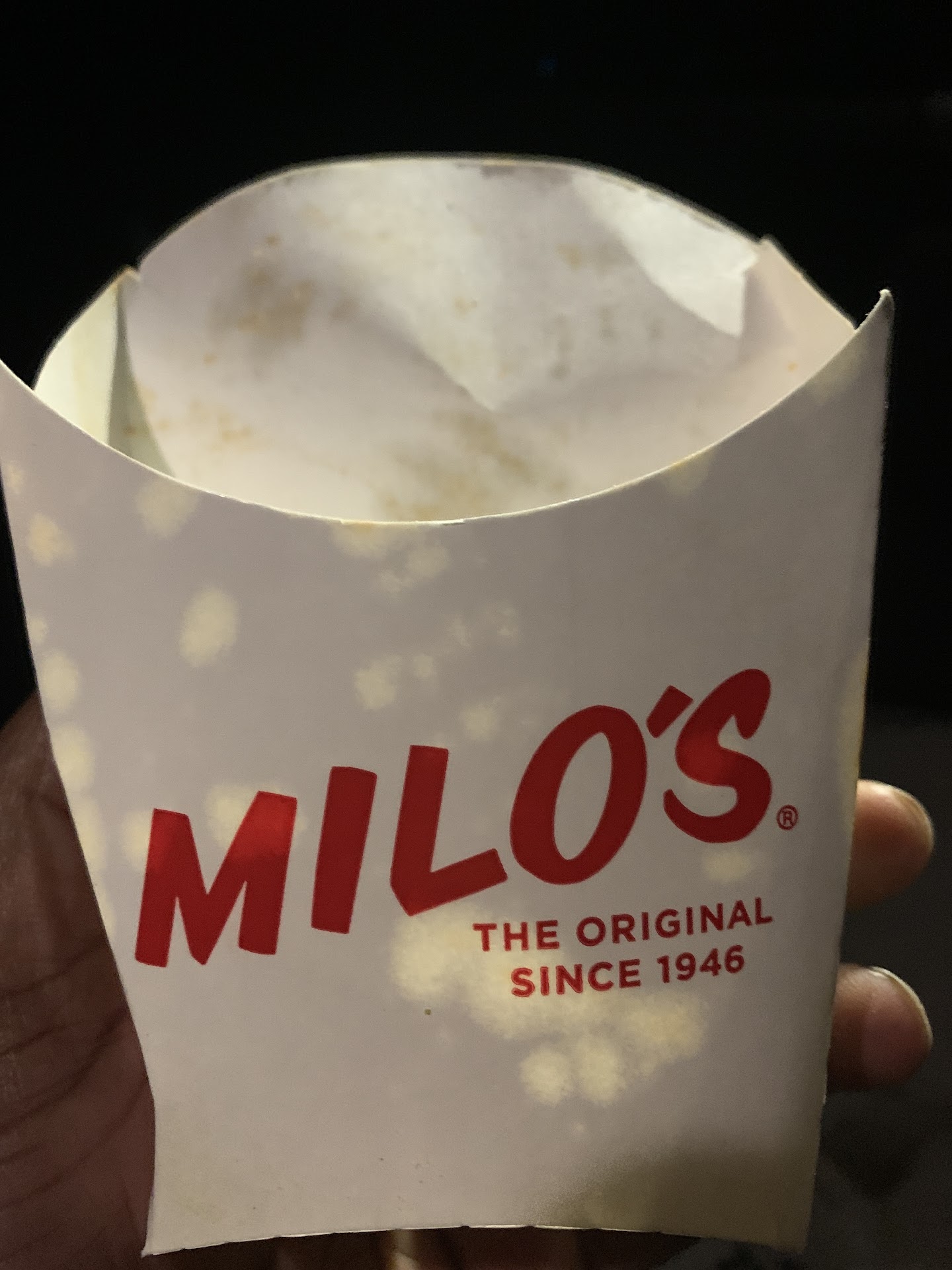 Read moreWhen I get my kids pizza I usually get myself something else. Arby's is the easiest but I impulsively decided on Milo's today. I haven't been to Milo's in over a yr. Probably longer. I had consistently gotten poor service at the location in Trussville and food had gotten to be too much. I ordered my kids 2 pizzas for 15 dollars and 1 combo here was nearly 14. One combo! I accepted paying the cost today and placed my ordered. Got home and the fries were not all the way cooked. The fries have always been about 99% of why I went. The fries yesterday were not cooked all the way and they were not seasoned. Was an absolute disappointment and it won't happen again. Or at least for another very long time. AGAIN! I've never worked fast food. I did retail when I was younger. I imagine fries are on a timer so how is a batch this uncooked. I'll wait an extra minute for cooked food. Well I made pizza in high school. No deep fryer though. Anyway, the food was a massive disappointment. The hamburger was good but bad fries is...