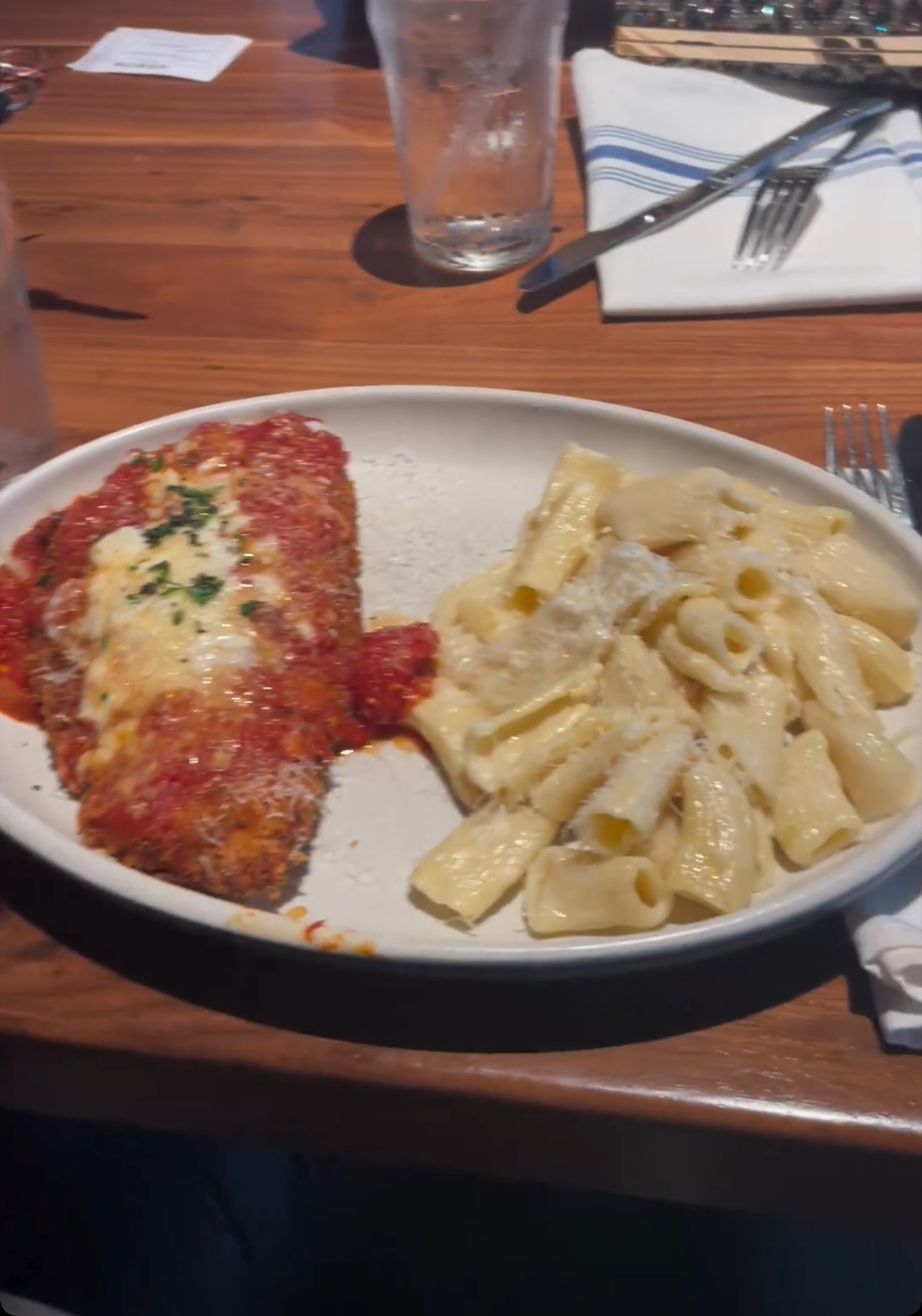 Finally, the last of our party ordered the chicken parmesan. There is no other way to put it, this/it was a copious amount of food. I mean a real lumberjack portion. So much so, everywhere at the table made some sort of comment when John placed it on the table. It was a real Man vs. Food moment, and you half-expected Casey Webb or Adam Richman to show up at the table. Two strapping men could probably split this dish and be comfortably satisfied. It makes you wonder where they grow these massive chickens and just what they are feeding them. Anyhow, the person who ate it said it very good.