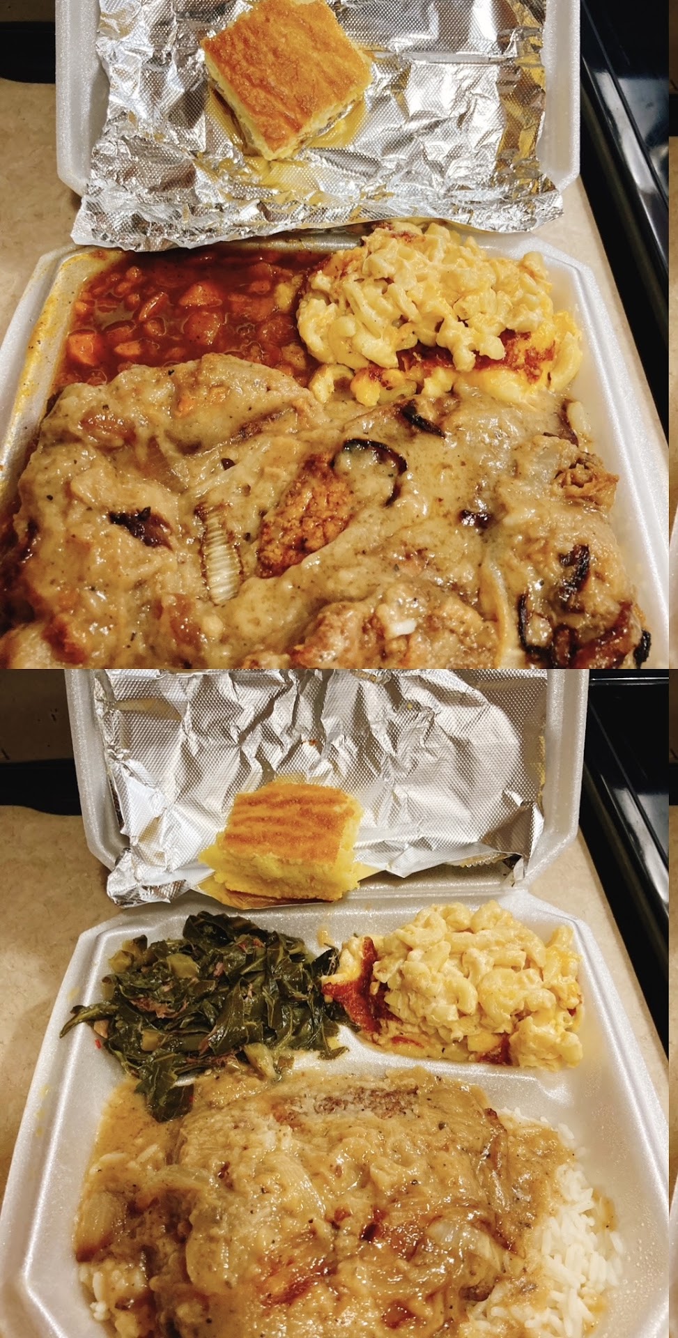 I was turned on to this place by a well known chef who travels to different cities ratio restaurants and he rated this one high and I believed him. Upon entering you are greeted with generic, "Hey, how you doing," while loud gospel music is blasting from the mounted TV. I love gospel but it's too loud and you can't hear their questions about your order. I indicated that I couldn't hear them...This is my first time here & the owner's wife was working the cash register and complained that people were getting on her nerves and I believe she was referring to the other workers but I told her to try to have some patience. She was originally friendly though. I ordered smothered pork chops, mac and cheese, yams, and cornbread. The pork chops and mac and cheese were good THIS TIME (keep reading)... the yams were FLAVORLESS. The cornbread is like a mix of Jiffy and cake mix, which isn't bad per say. I came back the next month to give them another chance, trying to support small business. I ordered smothered (fried chicken), mac and cheese, cabbage, and cornbread. I checked my plate before leaving and it looked like chicken under the gravy. The cabbage was watery and NO FLAVOR and the mac and cheese was just ok this time. I get home and it's hamburger steak instead. I spoke with the owner and he offered to make it right so I agreed to drive the distance and give them ANOTHER CHANCE. I had also sent pics to their Facebook messenger and no reponse on the PINK MEAT of the hamburger steak. I understand people eat medium steak but that is steak and NOT hamburger meat. I went back that Sunday for a replacement and explained to his wife the reason I came very discreetly so no one would hear or that they feel any embarrassment. I was met with rolling eyes from her, while she pointed and said, "Get in line." Another lady indicated to them that she couldn't hear their questions and actually told them the TV was too loud while she tried to order. They ignored it. I ordered the smothered chicken and actually got it this time and it was FLAVORLESS. The gravy tasted like pure salt and oil. The food is INCONSISTENT. The mac and cheese appeared thick on the line with a crusty top but actually was runny in the inside and FLAVORLESS. For bad attitude and NO FLAVOR, I'll pass. I was so disappointed to have spent nearly 20 bucks on a plate then return to have an even more disappointing meal, service, and attitude...and I drove quite a distance for this. The pics are below. I tried 3 times with this establishment...its a no for me. Edit to the Owner's response: My initial tasting wasn't bad, that's why I returned and tried to support your small business. Its strange I can't find the FB messages where I said I "enjoyed" your food. Y'all can't gaslight this review! 😂 The truth is the truth and it will set you free! It's not to my liking and I tried to save you all the embarrassment. I don't find it good and like I said the food is INCONSISTENT. Businesses are subject to...