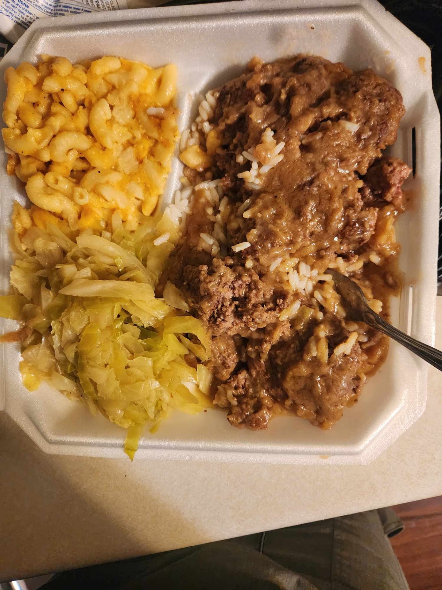 Read moreMy husband and i went there based on a food critic...upon arriving we were greeted..as we stood in line under the tv..it all of a sudden came on...soo loud it startled me..at the same time the server was giving info on what they offer..could barely hear for the loud music .we ordered our food. Hubby hamburger steak rice gravy and dressing ..me chicken rice dressing and greens..we are on sodium restrictions due to health..the meals were a total of 37.00..we got our food to go! The portions were very good looked good too! We started with the dressing..omg salty..then we thought it was the gravy on the dressing .we tried it w/o the gravy..nope dressing SALTY! MOVING ON..him steak rice n gravy me chicken rice n gravy..😮salty too both of them.mac and cheese was bland well not salty just no flavor..greens bland ..seemed just cooked in water only .we were very disappointed with our food... We were hungry and tried to eat the food the more we tried it seem we were licking a block of salt..please leave the salt alone even a person not on salt restrictions it was TOO SALTY . I WAS TRYING TO SUPPORT THEM BY CHOOSING THEIR RESTAURANT..I WAS TRULY DISAPPOINTED!😢 Maybe this was an isolated incident i dont know..but considering my health i seriously cant take that chance our health is more important than our hunger pains😮.the place is very clean..staff friendly..prices fair portions nice..we threw the food away and went back out and as a matter of fact spent another 37.00 ..where we were very satisfied.i really hated to do this..review but we're on limited income. And sick.. and i know theres others who may have serious health problems along with income and i want to warn them..i love eating at different restaurants just dont "want to die for it" please lighten up on...