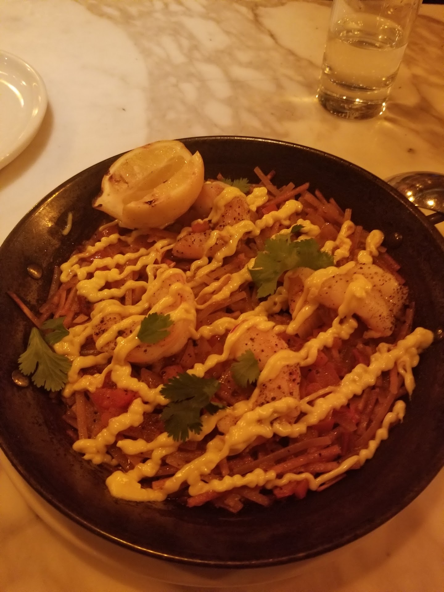 If the food was good and the service was adequate, you might wonder why I’m only leaving four stars. We arrived about ten minutes early for our reservation and our table wasn’t ready (understandably). We were told it would be just a little bit as several tables were wrapping up and that’s all totally fine. Where I take issue, is that while I was standing there visibility leaning on a crutch, I asked the hostess if there was anywhere I could sit while I wait. (I have a permanent disability and walking and standing for long periods of time is difficult.) The hostess quickly said no and moved on to the next group to walk in the door. After getting this response, I did the best I could and sat on the ground outside the door in the main pathway. It was honestly pretty degrading having to constantly move out of the way while sitting in the gravel as other patrons and waiters walked by, especially considering that I was staring at about four empty tables with chairs. I didn’t want to sit in them as they appeared prepped for a reservation and I figured if the hostess said there wasn’t anywhere to sit, then they must be planning to seat those outside tables asap. (Nobody sat at any of those tables before we were seated at ours inside). Now imagine my surprise, when we were seated at our inside table, it was directly in front of the back second bar that wasn’t active and had four empty seats where I could have been placed out of the way until our table was ready. Further imagine my shock seeing that around the corner from the restaurant near the soap store, there was clearly a ledge made for seating. This was our first time here, so we didn’t know any of this existed, but any one of these options would have provided a comfortable out of the way place to wait to be seated, if the hostess had only taken a couple extra second to try to find a solution for someone actively asking for a reasonable accommodation. At first I was frustrated as there is space out front for a couple of chairs or benches to make waiting more comfortable for the elderly and disabled, but that turned to anger when I realized there were already several out of the way options available and that the staff just didn’t care enough to try to help.