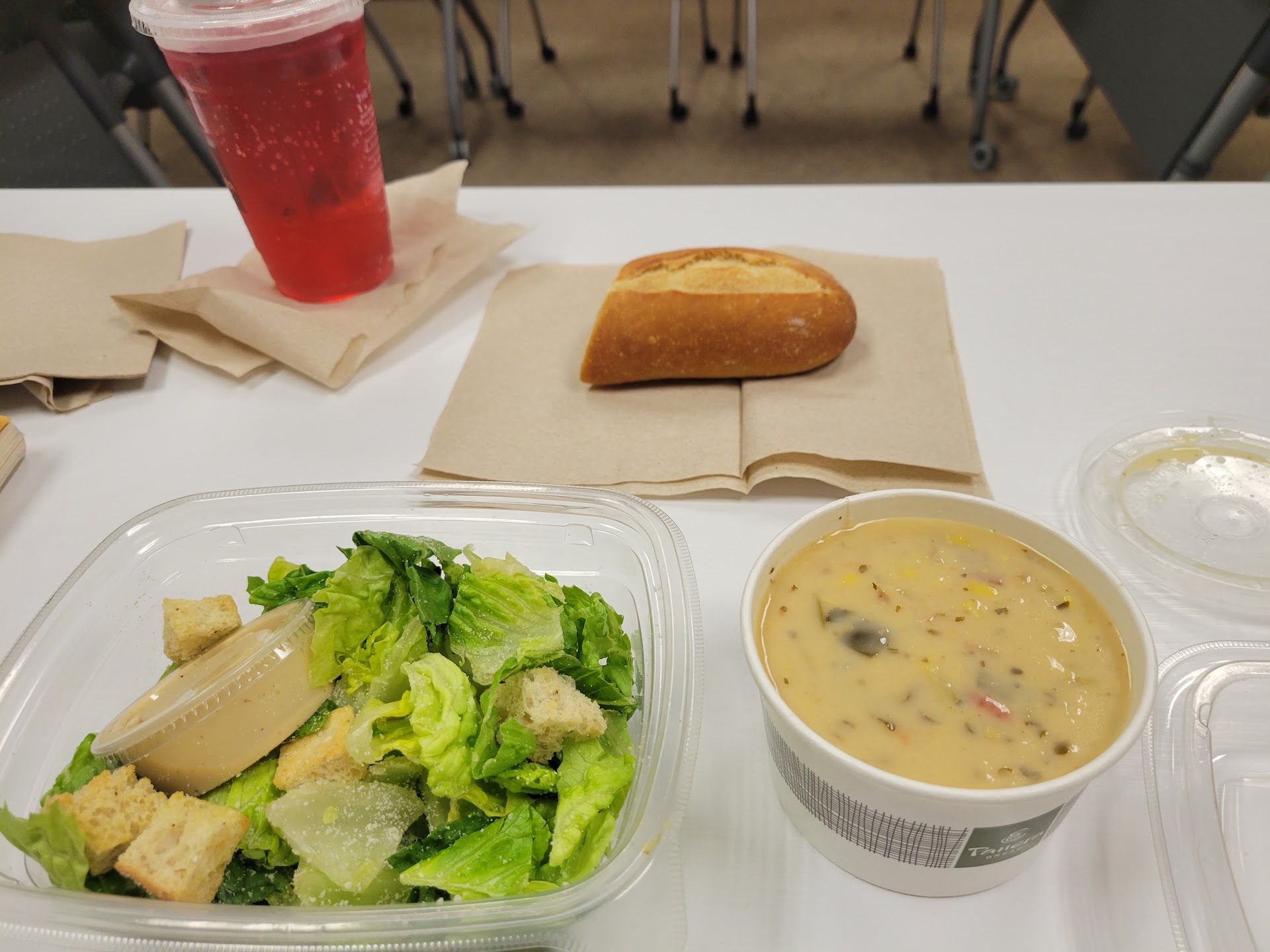 When my food arrived, the first thing I went for was my coffee, which didn't include a straw. That's issue number 1. Always put a straw in the bag if your customer got an iced latte, as it's made behind the counter. The 2nd issue is that the drink wasn't stirred. So no straw, and no way to stir my drink that I've been craving for 5 days cooped up in this hospital room. In the 8 years and literally thousands of iced lattes I've made at Panera when I worked there, I NOT ONCE, NEVER, EVER forgot to stir someone's drink. I mean, it's part of the process. I had to stir my iced caramel latte with a freaking sharpie. Thank you.