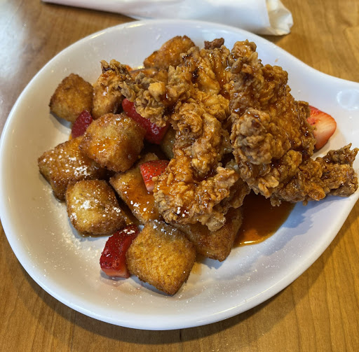 I ordered the sweet heat chicken and French toast bites with a Ruby Mimosa. The chicken was defiantly the best part of this dish with a spicy honey like sauce covering a non-seasoned breaded chicken. The bites themselves need work. While they had a really nice crust outside and were chewy in the middle, I had some that tasted greasy? The strawberries were warm and looked possibly cooked? I'm not sure if that was intended, but it was okay. The drink was warm and somehow arrived immediately when we asked about it some time after asked about its whereabouts. Was a 3/5 drink. Other drinks included a Bloody Mary which was pretty tame on the spice side but the size was defiantly not worth the price. Not a true New Orleans Bloody Mary but good if you want something "like" a bloody Mary. We also got the vanilla ice coffee and it was watered down and had absolutely no sweetness to it. Sometimes that can happen so just be aware. Another got a plain black coffee with a 1.00$ extra for cream. That was kinda bizarre. They were also out of straws and that happens but they could atleast wipe their cups dry so there isn't dry spots on them. One of our members got a breakfast platter and there was a whole cooked egg in the stone grits. Wasn't expecting that. The Benedicts was defiantly the highlight of this restaurant so if its your first visit I would recommend that as it came out very tasty and worth the price. Party of 4 with 4 meals and 4 special beverages was $91ish so I would label this place as a new Orleans inspired brunch restaurant that trys to sway towards fine dining level prices. I do think Big Bad Breakfast still reigns as the best brunch place in this side of Birmingham. I'd say go here once for the experience but keep the above in mind. Waited 20 minutes for the waiter to stop by so we went to the front to pay. Apparently that wasn't the correct thing, but the nice hostess took off the coffee and the greasy...