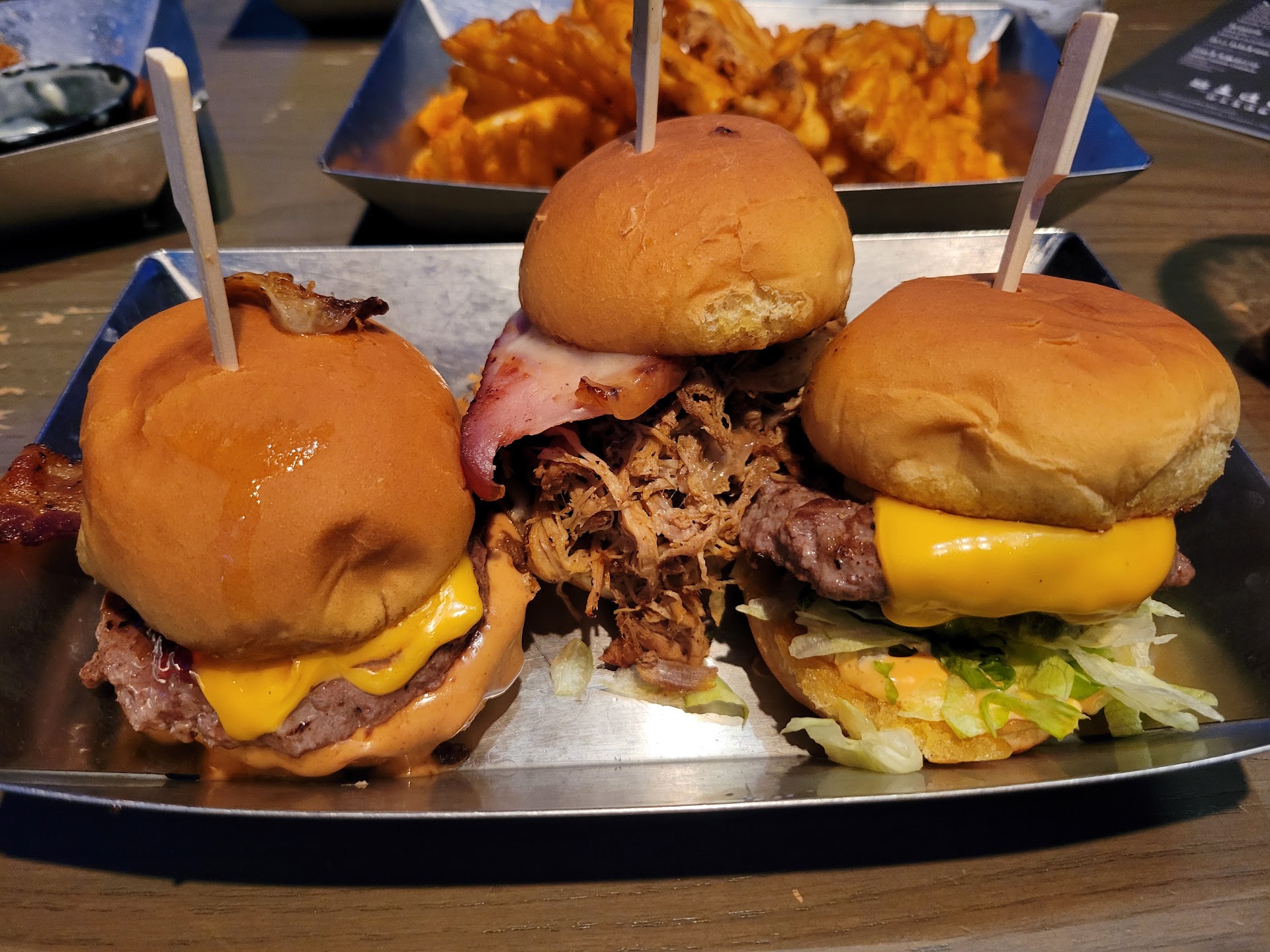 Read moreWas looking for a new place to grab a quick snack before going to the movies, and Sidecar Slider Bar did not disappoint! We stuck to the shareable menu because we planned on eating a ridiculous amount of popcorn, and the items we picked were amazing! We went with the waffle truffle parmesan fries, roasted balsamic and blue cheese Brussel sprouts, and southwest egg rolls. The truffle fries were absolutely hands down the best parmesan truffle fries I have had, and I have had them at a few different establishments. They were hot, fresh, big, and I loved that they were tossed in a truffle oil AND covered with a parmesan truffle sauce instead of just a sprinkle of parmesan cheese. The Brussel sprouts were really good. They also come with bacon, but we aren't pork eaters, so we ordered them without, but they were still awesome! The balsamic and blue cheese crumble complimented the crispy Brussel sprouts well. Last but not least , the southwest egg rolls. They came with a side of sour cream and a zesty spicy ranch type dressing. They were great, stuffed with the perfect amount of black beans, corn, chicken, cheese, and spices. When they say shareable, they mean it because those three dishes had the two of us extremely full and needing a brisk walk before heading to the movies to fill up on movie theater treats! In all, it was a great new restaurant experience that I will definitely return to have. The wait staff was awesome, and the place was clean, and the vibes were great. Kind of a sports bar meets family hang out spot! Check out Side Car Slider Bar next time you are in downtown...