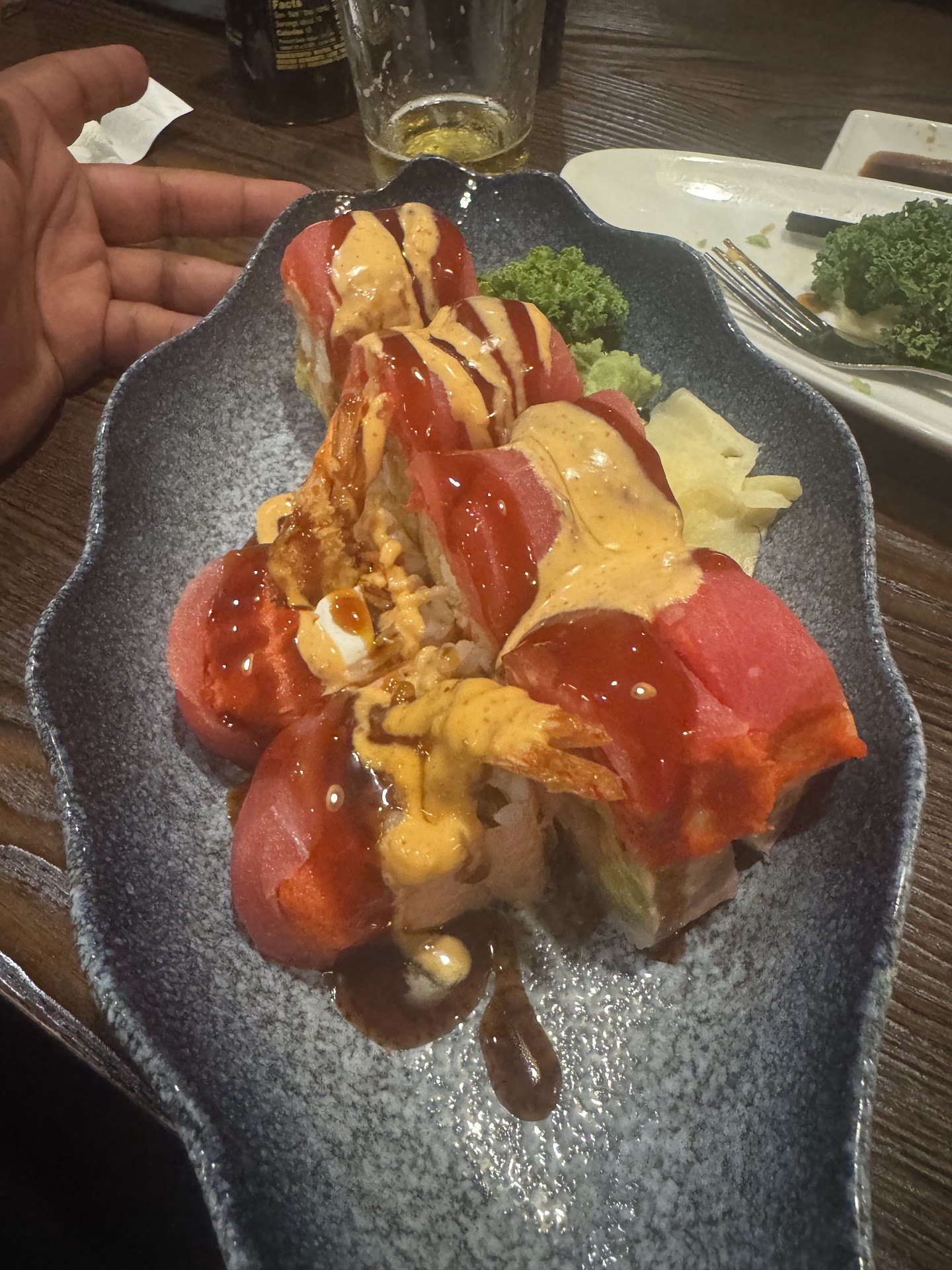 Under the seas roll, looked beautiful, taste not so much. It's too much squished together with a creamy sauce on the top. I've been going to sushi restaurants for years and I had to spit this out. Absolutely beautiful, but toe, between too many textures and the creamy sauce on top, it was just gross. Excessive but not in a good way