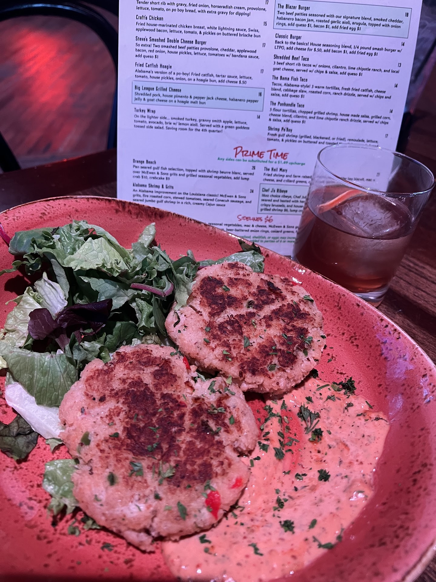 The atmosphere itself was awesome with a nice bar, live music, nice looking stage and dance floor and yes a disco ball! Great place to hang out and eat good food.