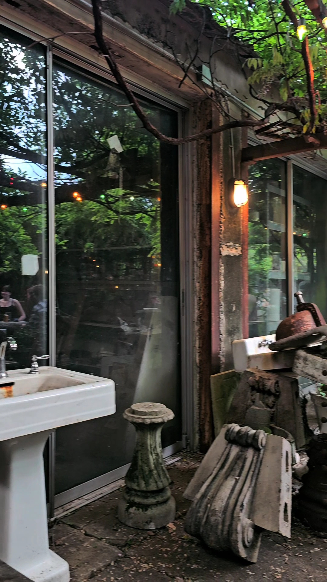The Good: Probably the best place to go to get to know someone on a serious date because you can go outside and it's quiet. Or also perfect to have that serious conversation wtih someone because you can go to a private area and really talk with someone while drinking and not worry about being overheard or bothered too much. Very charming atmosphere outside - you are surrounded by what appears to be a never ending maze of garden sculptures and cement fixtures with Christmas lights hanging down all over the place.