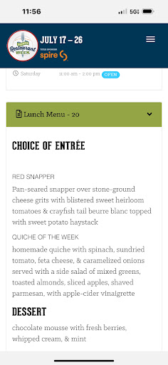 Read moreThe meal I chose off the Birmingham restaurant week specials was the pan seared snapper over grits, this was very tasty with the sweet potato haystacks on top of it really added a little punch of flavor along with the cream sauce! The service was excellent, and the scenery was awesome. The only negative thing that I could find was the chairs were a little uncomfortable sitting in. however, I will come back and try something off of their regular menu because it all sounds really good and this is the first time ever being in in the restaurant at the...