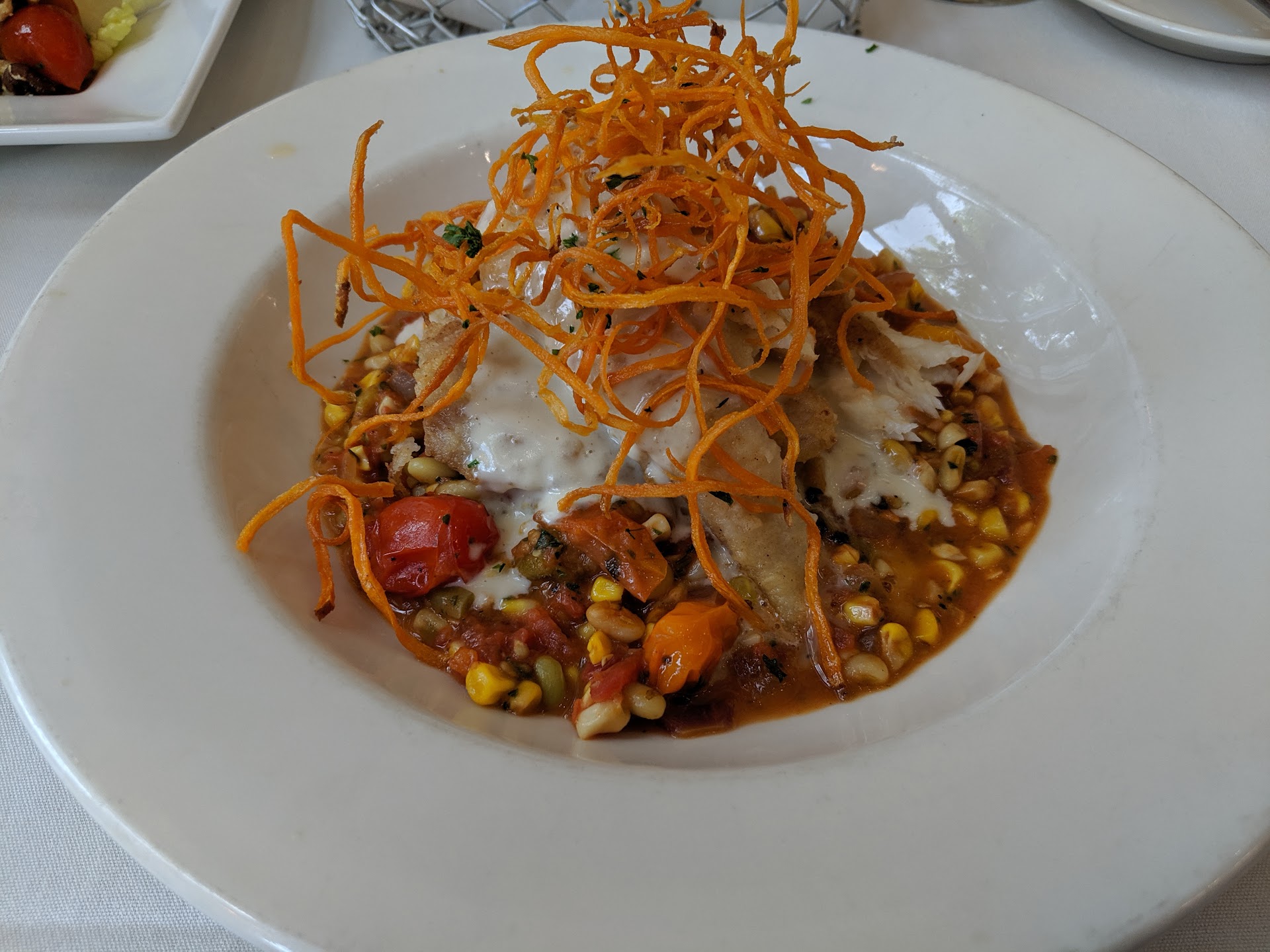 Read moreThe meal I chose off the Birmingham restaurant week specials was the pan seared snapper over grits, this was very tasty with the sweet potato haystacks on top of it really added a little punch of flavor along with the cream sauce! The service was excellent, and the scenery was awesome. The only negative thing that I could find was the chairs were a little uncomfortable sitting in. however, I will come back and try something off of their regular menu because it all sounds really good and this is the first time ever being in in the restaurant at the...