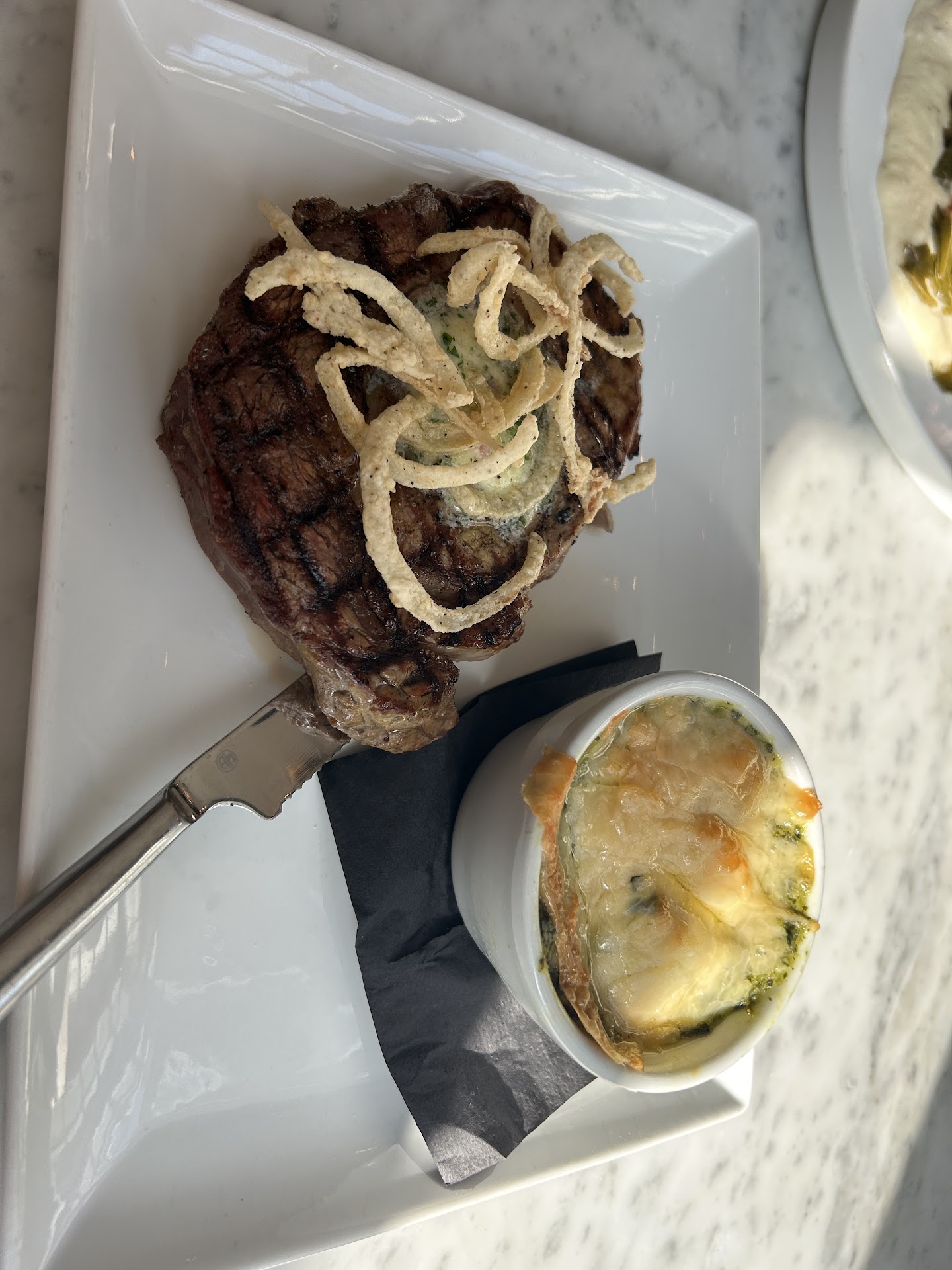Here are my concerns: I paid $20 for 5 pieces of shrimp that were cold in the middle almost like they were frozen (which is not fresh) ontop of that half of the lettuce was wilted. When the waiter came to us to ask how everything was, I started to explain to her that I was disappointed and she nervously laughed and walked away. Onto the entrees; I got the filet mignon which was cooked correctly but there was no flavor, the pepper gravy was so overpowering it took away from the filet. The garlic mashed potatoes were the highlight of the dish and unfortunately I had a few garlic cloves that were so hard you could not cut them with a knife. My husband got the frenched chicken and he said it was cooked well and seasoned nicely. However the grits were bland.
