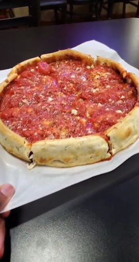 Read moreI have mixed feelings which is why I gave it three stars. I went for the first time and I wasn't sure how the process worked. Similar places you order then have a seat and they bring it to your table, but here you have a seat and wait for the waiter to come get your order. So I stood at the counter for about 10mins for no reason thinking I had to order there and the lady behind the counter never gave me any kind of direction. Eventually a guy came out and asked me was I picking up a order or dining in. Then I was finally told I could just sit anywhere. So I would like to my commend my waitress, she was amazing and made the experience a good one and took good care of me and my friend. Finally the pizza looked good, definitely was excited about a true deep dish pizza (see picture), more moist than I expect once the slices were separated and I thought the ingredients would be cut up more, it was basically whole grape tomatoes in it.