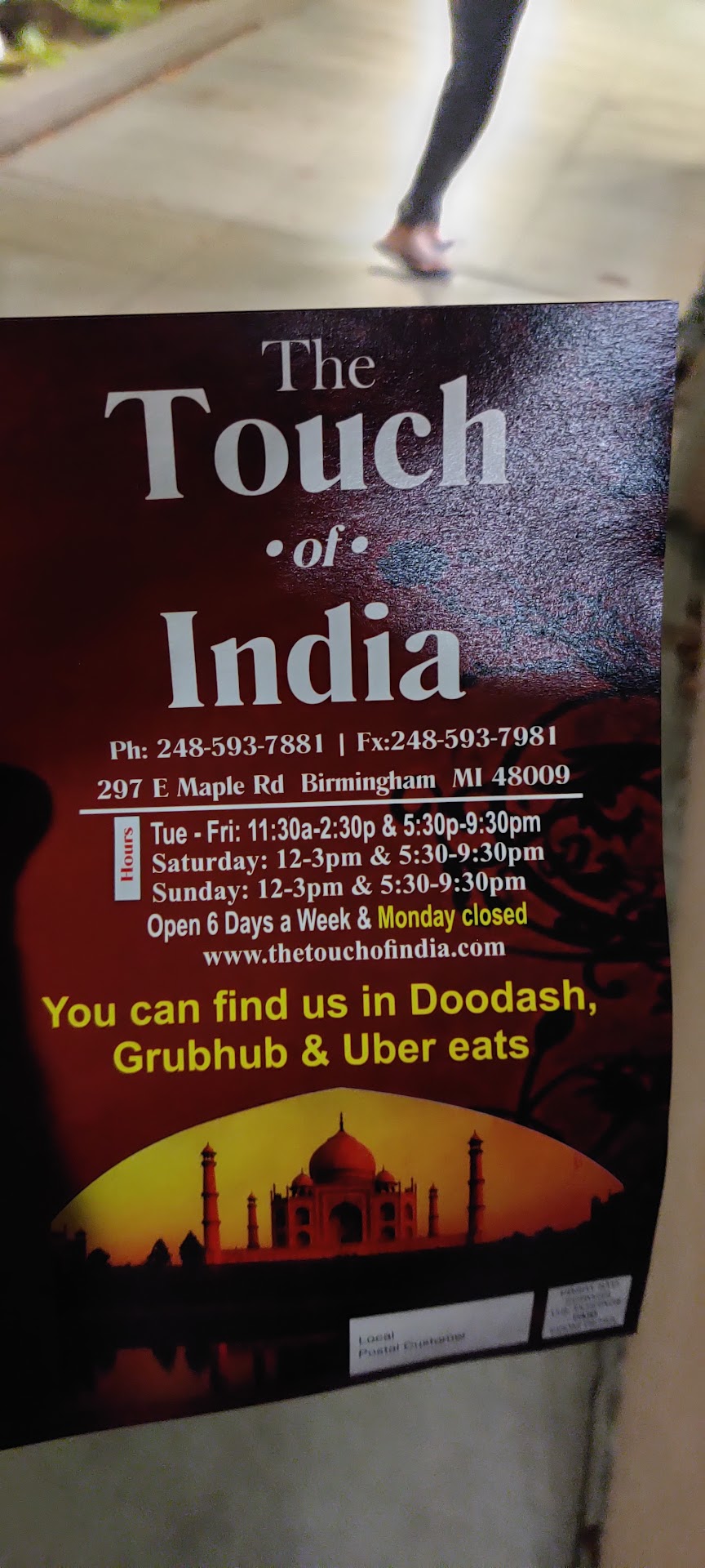 Read moreIt pains me to write this as Touch of India used to be my favorite Indian restaurant in Michigan. I gave it 5 stars over and over and recommended it to everyone I knew. The last time that I ordered, my normal items just did not taste right. I chalked it up to being an off day for the kitchen. Today I tried again and everything was basically inedible. I had to throw away almost $40 worth of food that normally would have lasted me for multiple meals. The Chicken Makhani used to be the absolute best, so flavorful, not bland like a normal "butter chicken". Today, all it tasted like was sweet butter. There was no spice, there were no flavors, it tasted like eating saucy sweet lard. The garlic naan normally comes with a nice char, a little crispy. This one was thick dough, no crisp, chewy, the garlic was not even browned on top. Was more comparable to a frozen dinner flatbread pizza. The veggie samosas were also almost inedible. They used to be thin crispy shells stuffed with potatoes, peas, and spices. Today the shell was thick, chewy, doughy and they were stuffed with flavorless green beans, carrots, and peas, and corn. I had to smother everything completely in the green chutney sauce, which in itself was way more bland than normal today, it usually brings the heat and has a ton of flavor. Even the rice is usually so flavorful, today, bland. I did call and ask if there was a change in ownership or recipes. the gentleman told me that there had been a change in ownership a few months ago but that the recipes shouldn't be much changed, even though there was only one of the same employees. He also stated the head chef had called in sick today. Since the normal chef was sick today, I will give my old favorite place one last try to see if they still prepare the same amazing recipes I have loved for the past 10 years or if this new ownership tanked the place. Will update my review based on my...
