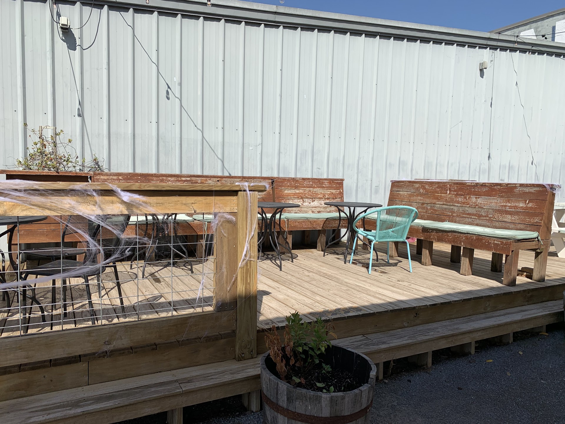 First time there this weekend. Plenty of outdoor seating with large tables. Inside is very bright and clean with some merchandise on shelves available to purchase (shirts and stuff). There is a long bar right there in the front inside with a large menu of different craft beer choices. They offer samples for you to try before deciding, which is awesome. Through glass double doors on the left of the bar is a large open warehouse area with a bunch of tables and chairs around the side and a big open area for people to stand. There is a stage to the back with lights and sound for Bands to play on. The rest of the warehouse roped off is where they store all the inventory. It has a very literal industrial feel. The walls are all concrete and metal, which is actually kinda terrible for the acoustics of the music. I feel like better baffling could be installed to help with that. It has an air of being in someone's Huge garage watching bands with their sound bouncing and reverberating off the walls. Very severe and raw environment to see and enjoy bands in. Sorry, but not sorry. Has to be total Hell for soundmen. Because of the Huge space, it really lacks for a personal warm feel. It's kinda like the whole music thing was an afterthought? I mean "Let's just put a low stage in our Huge warehouse where we store our product and let bands play" Much could be done to help that. Sound baffling on the walls and very high ceiling and maybe several very large rugs on the floor to absorb some of that reverb? Very nice staff and great tasting...