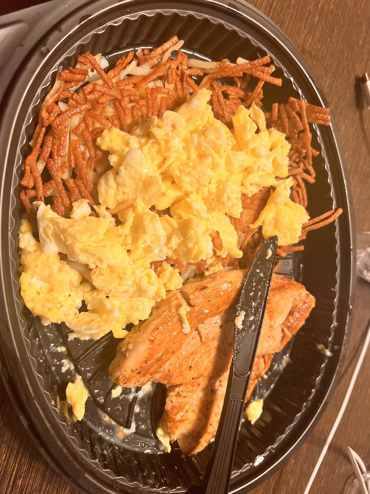 Read moreOur family entered the breakfast diner, with spirits as bright as the morning sun. With us, a young child whose laughter echoed through the diner. The patrons smiled, and the servers took notice, for the child's presence was a balm to the dreary routine of life. The diner was a place of steel and glass, plastic booths, a hot griddle and bubbling pots. It was a haven for hungry travelers, and the food that emerged from the griddle was nothing short of magic. Our family was greeted by a burly, bearded server whose smile was as warm as the griddle. He greeted us at the booth nearest the bar. We sat down and perused the menu, but our hunger was already fierce, and we knew what they wanted.l already. It was only a moment after ordering that our plates magically appeared before us. Eyes widened at the sight of the steaming plates. The aroma was intoxicating, and our tongues tingled with anticipation. The eggs were fluffy as clouds, the bacon as crisp as autumn leaves, and the waffles were light as a fairy's kiss. The child with us was as noisy as a dragon, her laughter as loud as thunder. The patrons turned to look, and the servers frowned, but we were undaunted because we had work to do! We savored every bite of our meal, spirits lifted by the young child's joy. The servers soon learned that the child's laughter was a harbinger of good fortune, and her presence brought them luck as we left a generous tip for the child left quite a mess under the table We finished our meal, bellies full and hearts light. This diner was a godsend. We were weary after being at the hospital through the night. Its location is as superb as the experience inside, brine right under the deck.