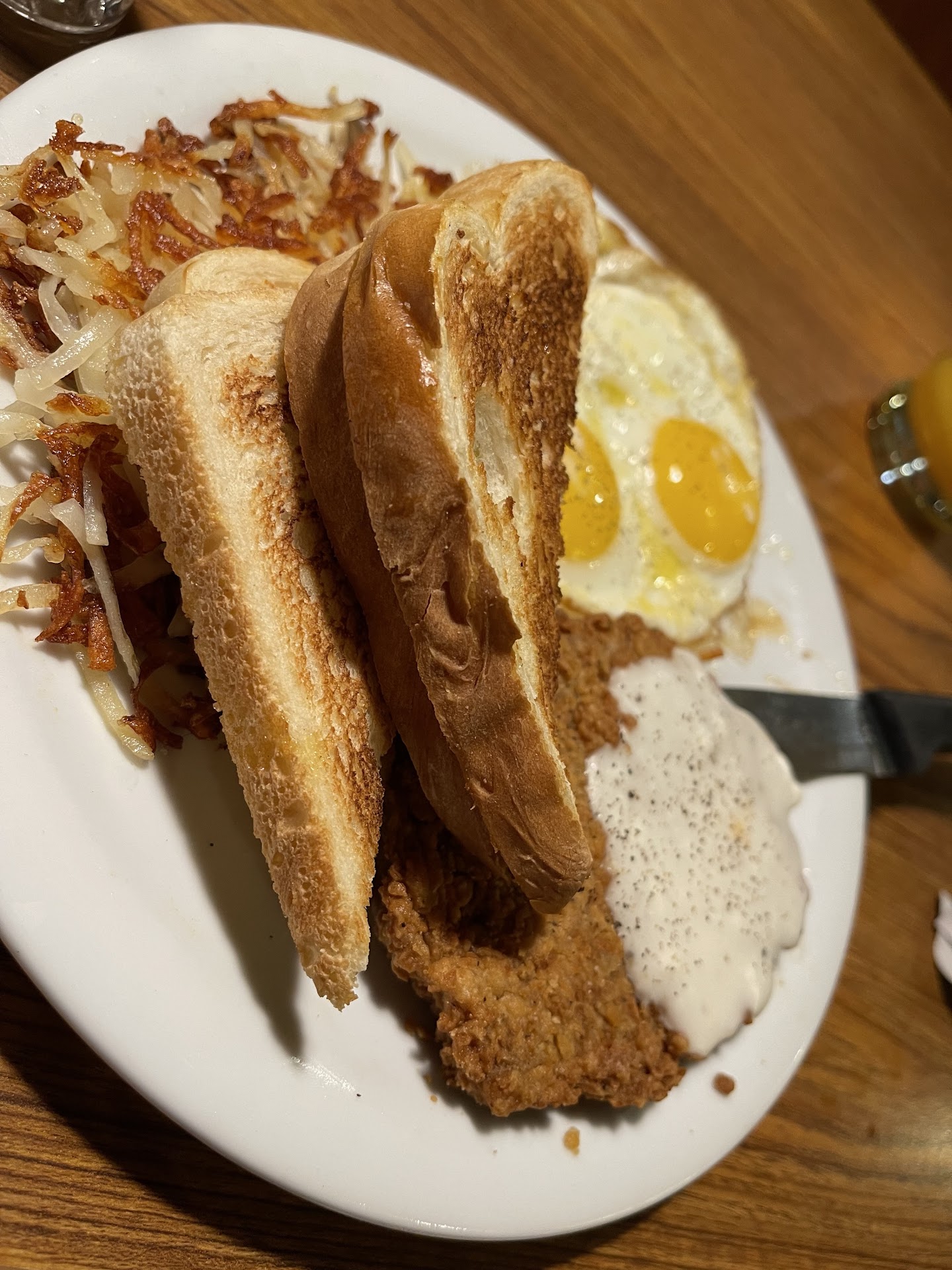 Read moreWarning Long review My son who was visiting us from AIT ( army training) for the holidays purchased tickets to from GA to Bismarck instead of Williston ND ( where we live). When it was time to leave Williston, his friends drove him to Bismarck Airport from Williston. Since his flight was so early in the morning the next day, he was dropped off the night before. Thinking the airport was open 24 hrs, he thought he wouldn't have to get a hotel for the night. Well he was asked to leave the airport 2 hours after he arrived because it closed at 12 opening back up at 3 or 330am. He was stranded with no family or friends and it was cold as hell outside. I told him to go to the nearest hotel or 24 hr Restaurant. *Here is where Denny's comes to in. He ordered food and was nervous about just sitting there for hours ( I was a server so he knows that sitting at a table for hours is taking money away from the server who could of turned that table 4 or 5 times) he asked the manager at the time (I wish I knew her name but it was 1/3/18 at 12 something am & manager was female) when he explained his situation she thanked him for asking if he could stay and told him to stay as long as he needed. She also gave him a military discount ( I don't know if she just gave him the discount or if he asked) He said her and his server were so nice about it, that he was able to feel at ease for a few hours ( Brianna was the servers name) i know it's pretty common for servers to write in their tickets words like 'Thanks', which is what Brianna did. My son thought it was nice and took a pic of the receipt to show me.( Which is the only reason I know the server's name) As far as I'm concerned Denny's was my son's loving home for a few hours! Please contact me if he didnt tip 20 percent or more so that I can make up for it!! Thank you for the great hospitality towards my 19...