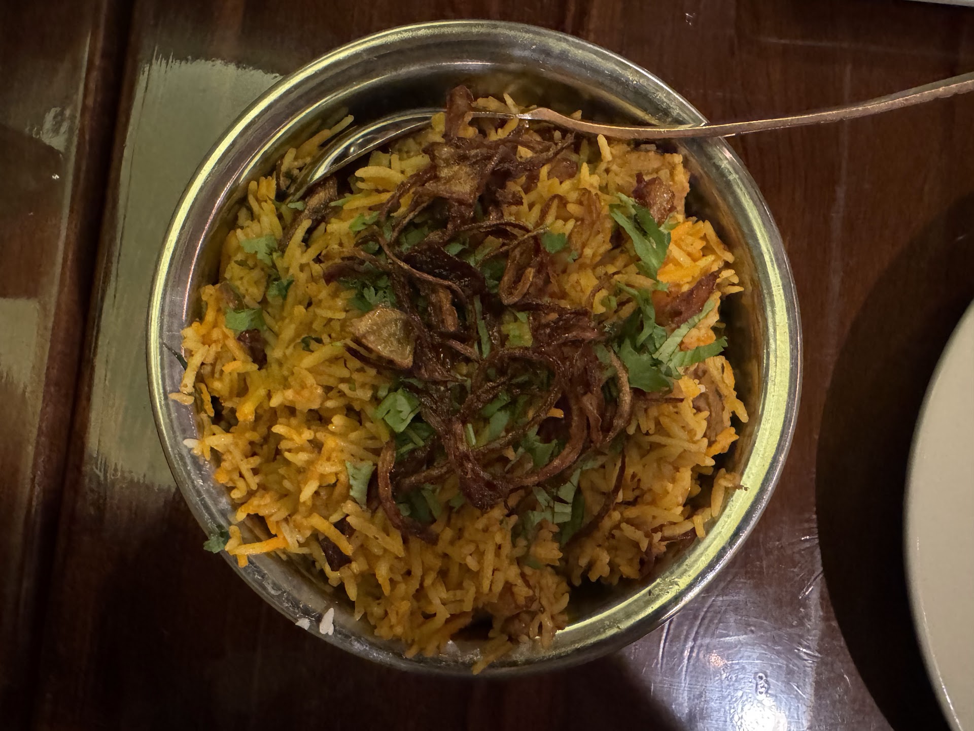 I ordered the lamb biryani and chicken biryani, and both were absolutely delicious. The flavors were rich and perfectly balanced, with tender, flavorful meat that was cooked to perfection. The salad was fresh and complemented the meal well, and the tea was the perfect way to finish the dining experience—fragrant and soothing.